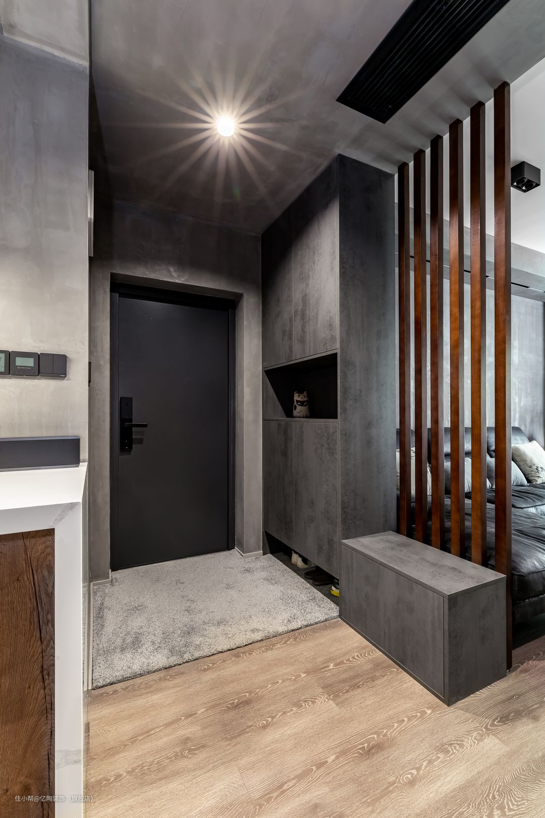 入门即是自然沉稳的气息,水泥灰的玄关柜有藏有露,收纳和实用性兼具,视觉效果整洁舒适。