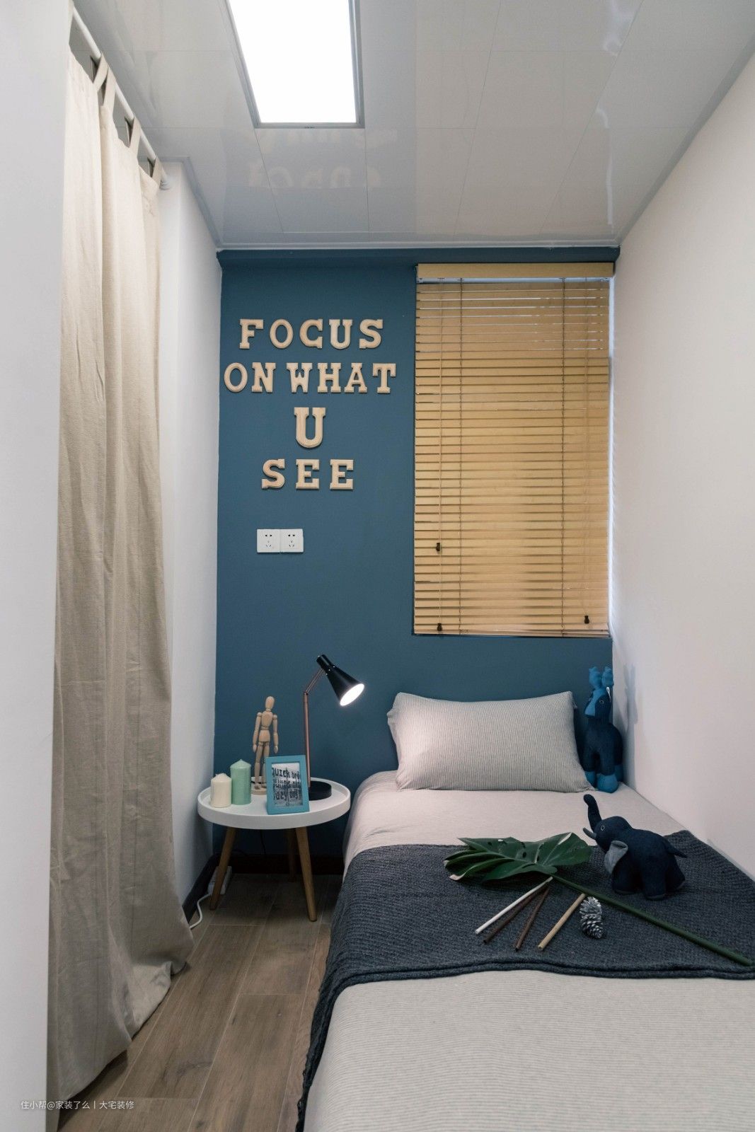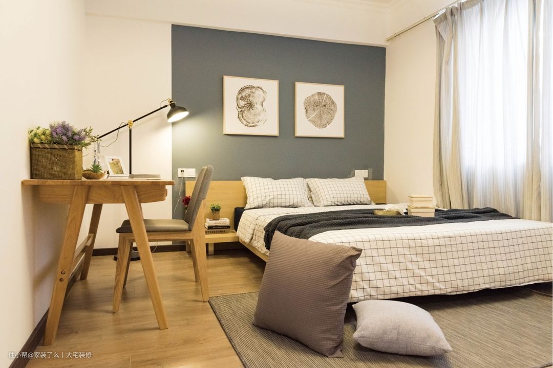 次卧抬高的地板,是空间的一个小亮点,严选的优质原木采用纯粹的无菌技术所压制而成,零零散散的铺满空间每一处细腻的角落。