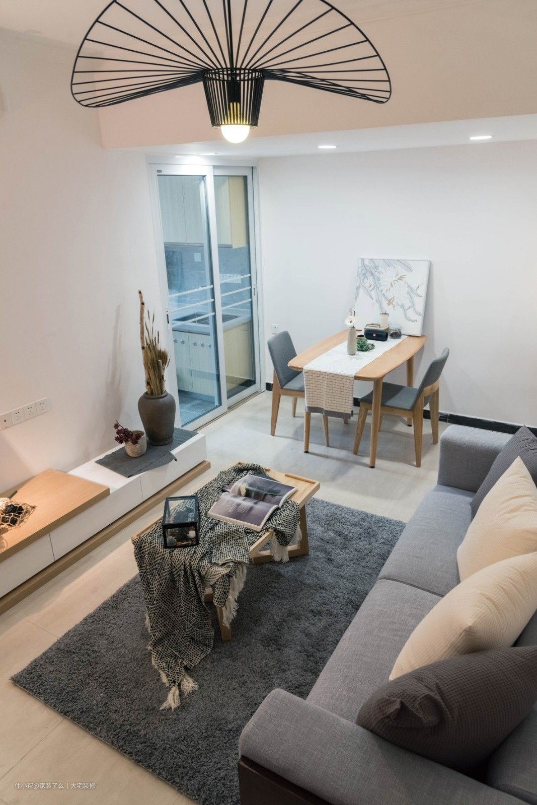 客厅空间比较狭小,设计难度相对复杂,毕竟小户型空间家具与色彩搭配相对复杂些,不过设计师通过细腻的设计与重新调整空间的层次感,利用吊顶、吊灯、矮桌,完美的拉升空间的层高,提升空间的质感。