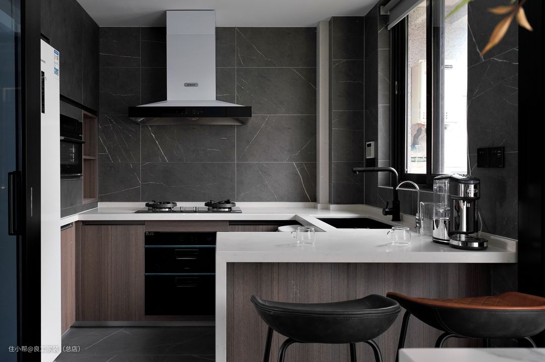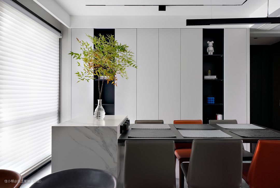 餐桌与岛台是采用一体成型定制的,兼顾美观与便利。
