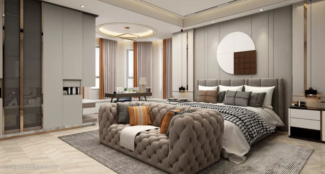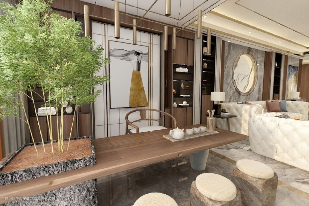小区:萨尔斯堡 户型:2室1厅2卫1厨 面积:317 m2 设计风格: 混搭 、 轻奢 设计单位:业之峰装饰 本案为西宁市萨尔斯堡小区,业主为80后夫妻,老人与小孩,一家五口,喜欢轻奢和新中式,风格上主选了轻奢,搭配一些中式元素,现代与复古的碰撞,融合业主的喜好,时尚大气不失调性的现代居所。