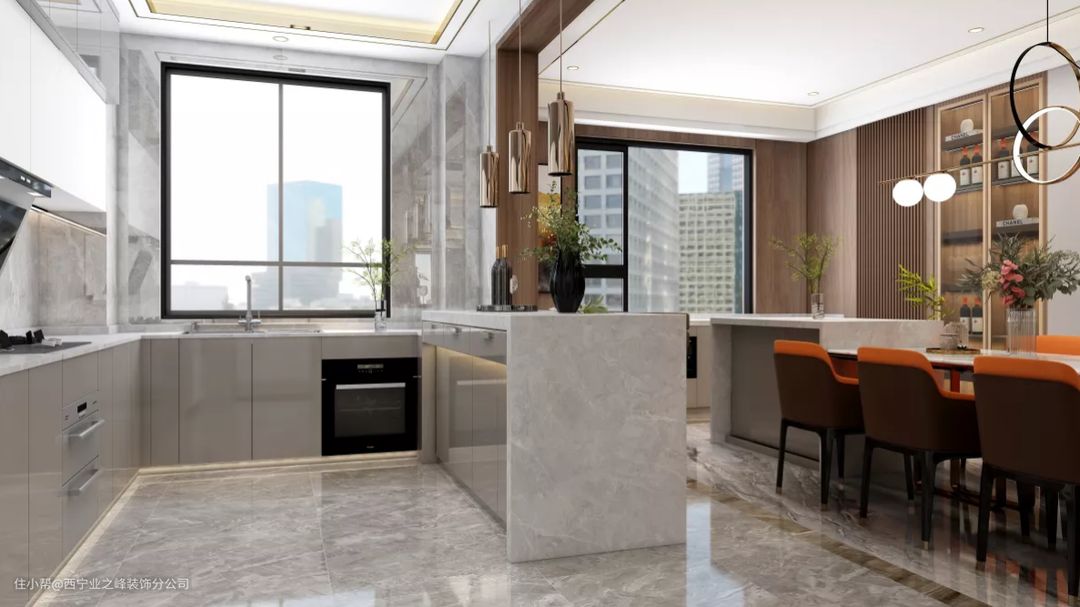 开放式的厨房非常适合现在很多人的人生活方式,可在烹饪时与家人聊天,增加社交性,不用担心,油烟问题一定会处理好