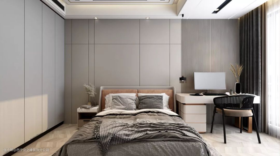 厨房、卫生间的收纳要求比较高,所以他们是以收纳为主,那卧室呢,基本就是休息、舒适为主。卧室只有一个灯完全满足不了需求的,增加了卧室的灯,提高卧室的生活情趣。 很多人的卧室窗帘并不重视,其实窗帘对于休息也是相当的重要,选择一款合适的窗帘,可以让你的睡眠达到事倍功半的效果。