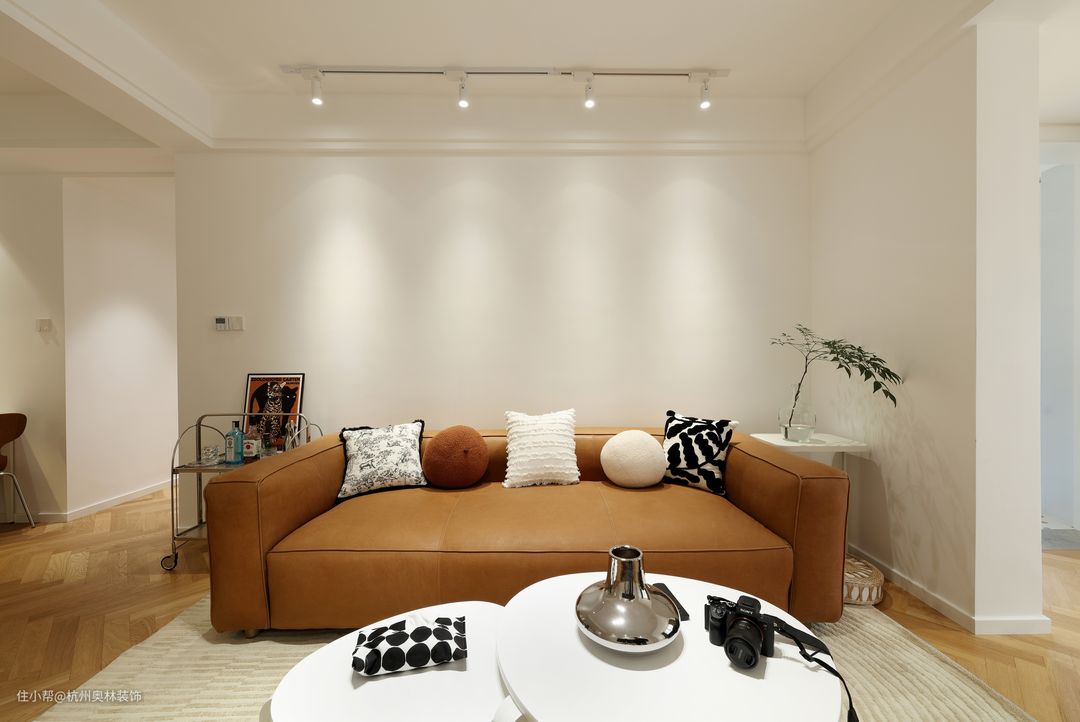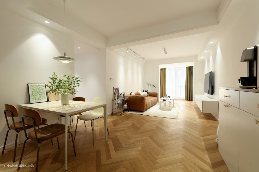 屋主是一位独居的小姐姐,喜欢简约日式风格,仔细认真。很喜欢研究灯光和软装搭配。整屋极大的减少了主灯的设计,运用筒灯与射灯相互托衬。整屋墙面以洁白为主,亮与黑的结合,视觉空间感上层次丰富,搭配上地板人字形铺贴,使空间感更强烈。