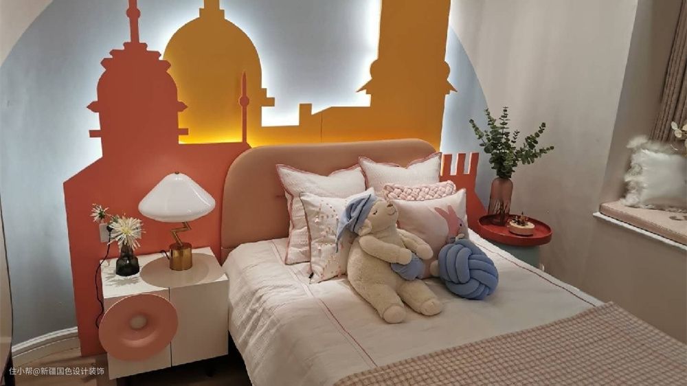 儿童房作为将来孩子玩耍的空间,做了富有童趣的背景墙,活泼可爱。