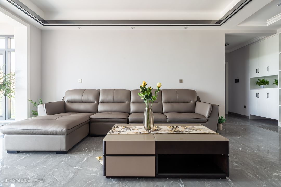 大面积的留白 给未来更多的可能 简洁的真皮沙发 拥抱工作疲累的主人 没有繁琐的设计 只还原居室的功能本身