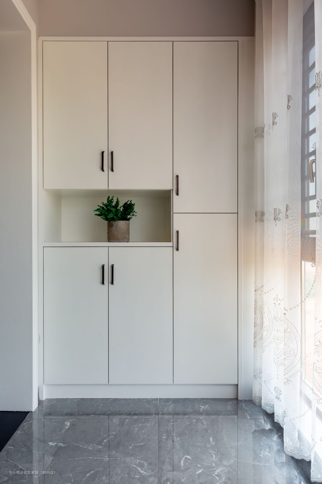 利用阳台空间 设计整墙白色储物柜 增加空间的利用率 为家居提供实用功能
