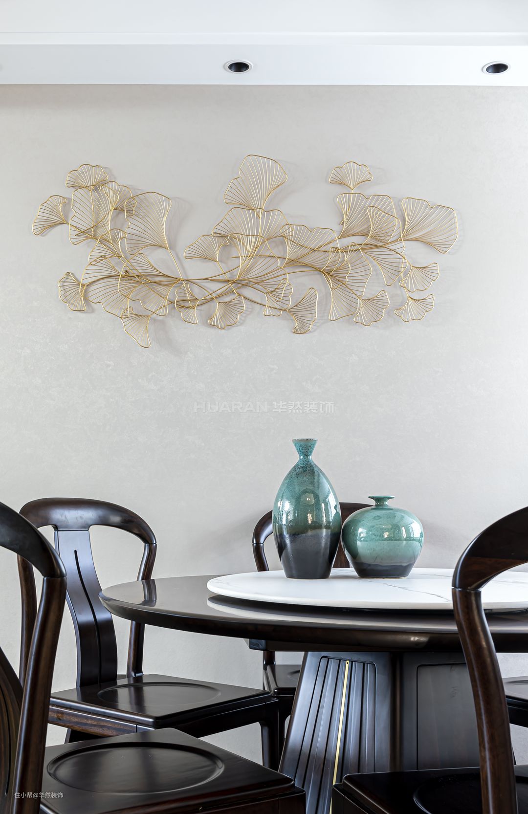 枝叶交错的铁艺银杏叶挂件,代表坚韧、沉着,同时寓意和谐与长寿,以此寄托着幸福吉祥。