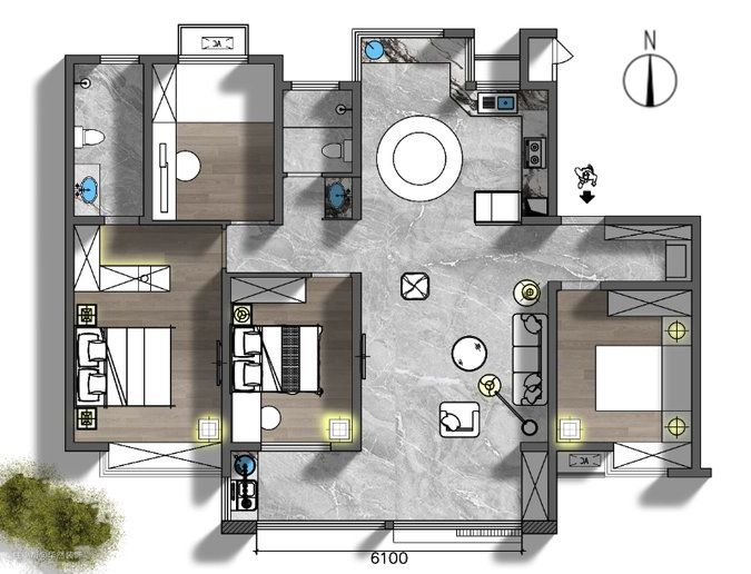 一门到顶的设计让空间更紧密有序,金属镶边与低明度色调相衬出低调中的精美高级。
