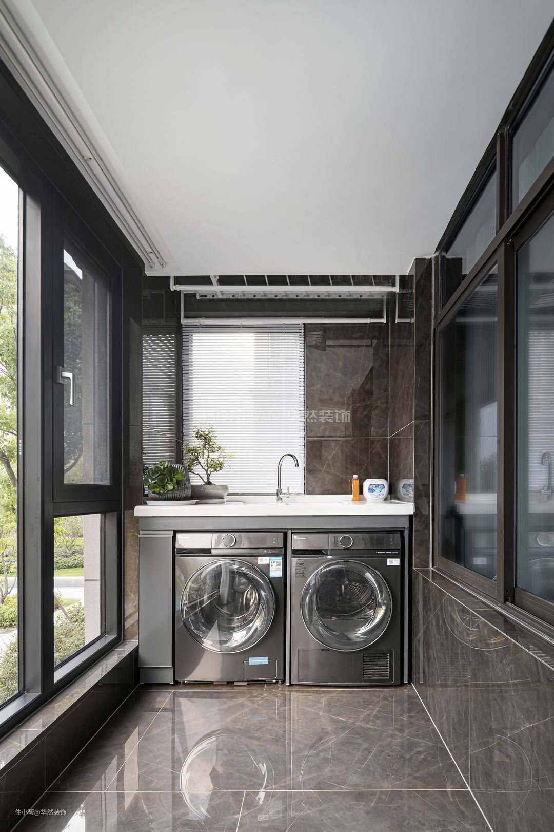 阳台的另一侧端头作为洗衣烘衣区,空间开阔通透,利于晾晒。
