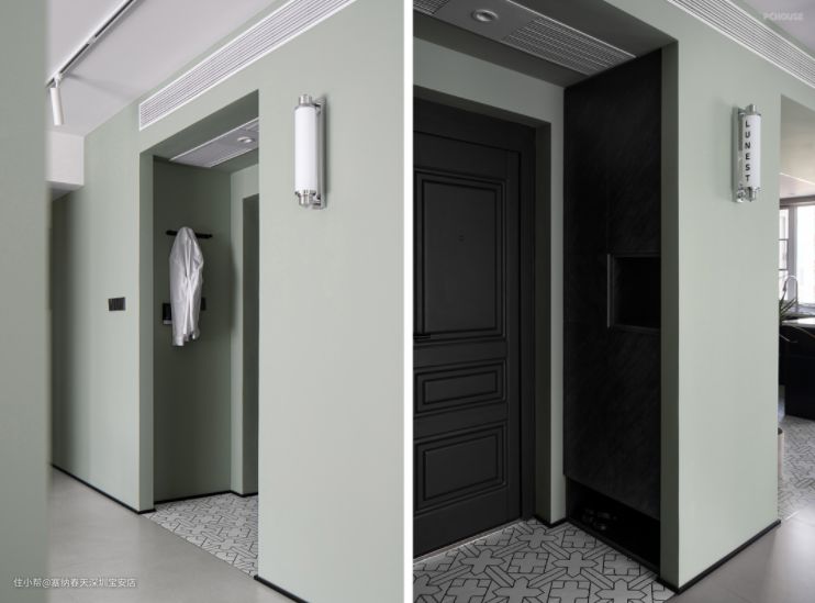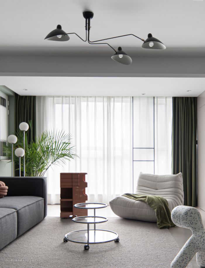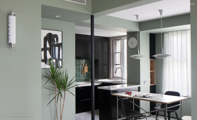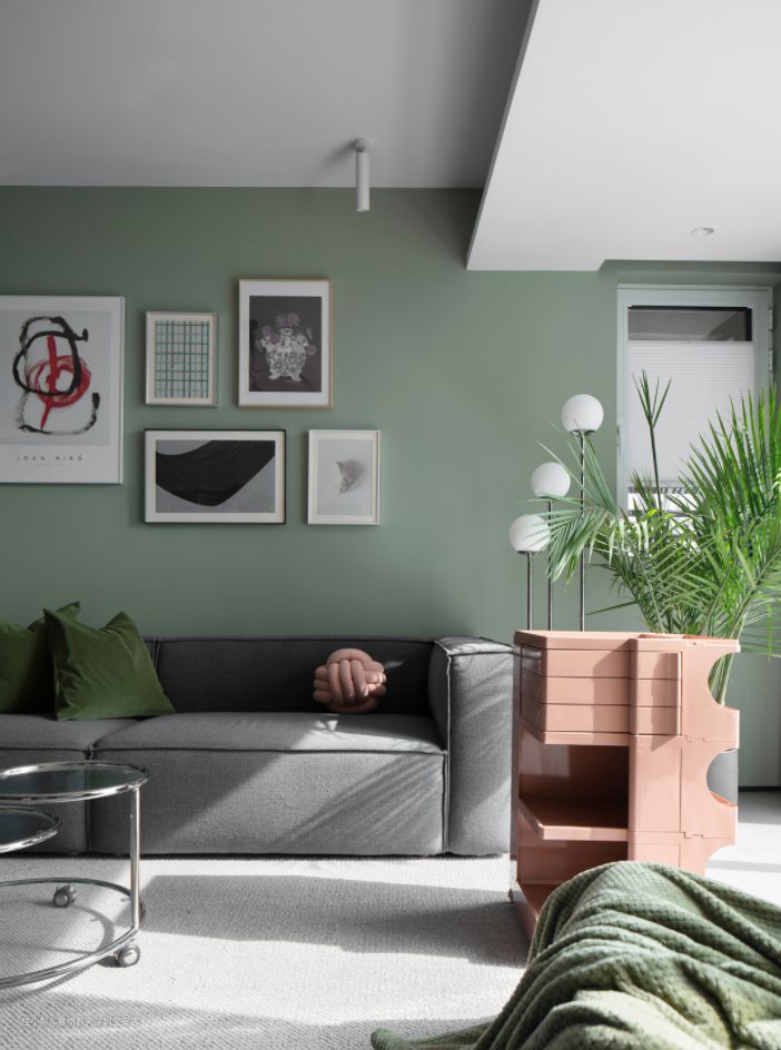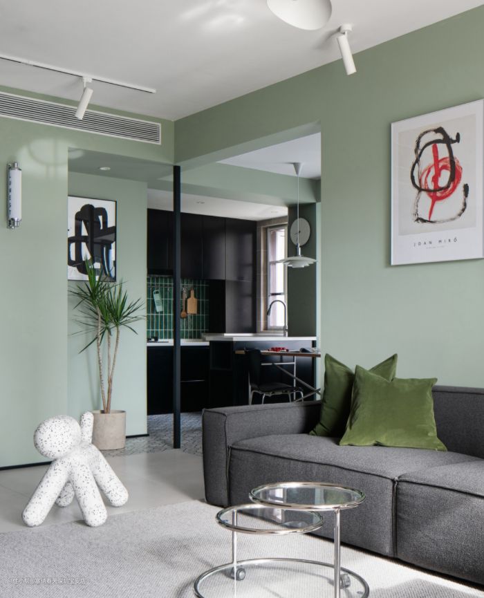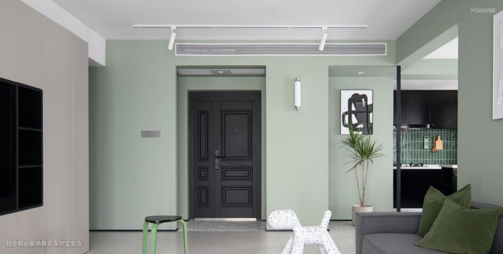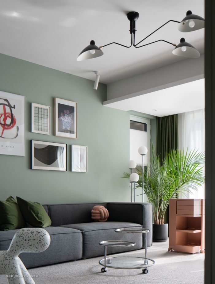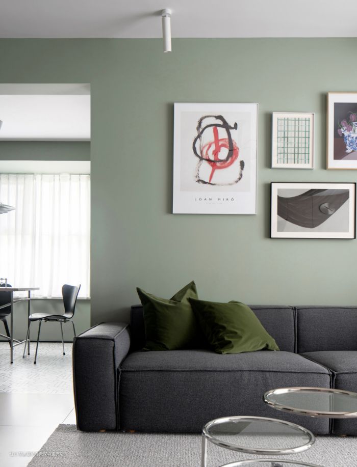 客厅整体墙面选用清新的灰绿色调,给人一种清新自然的感觉