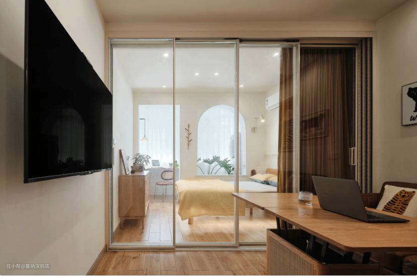 卧室与书房用移门划分,两个空间各自独立,也可以合为一体。