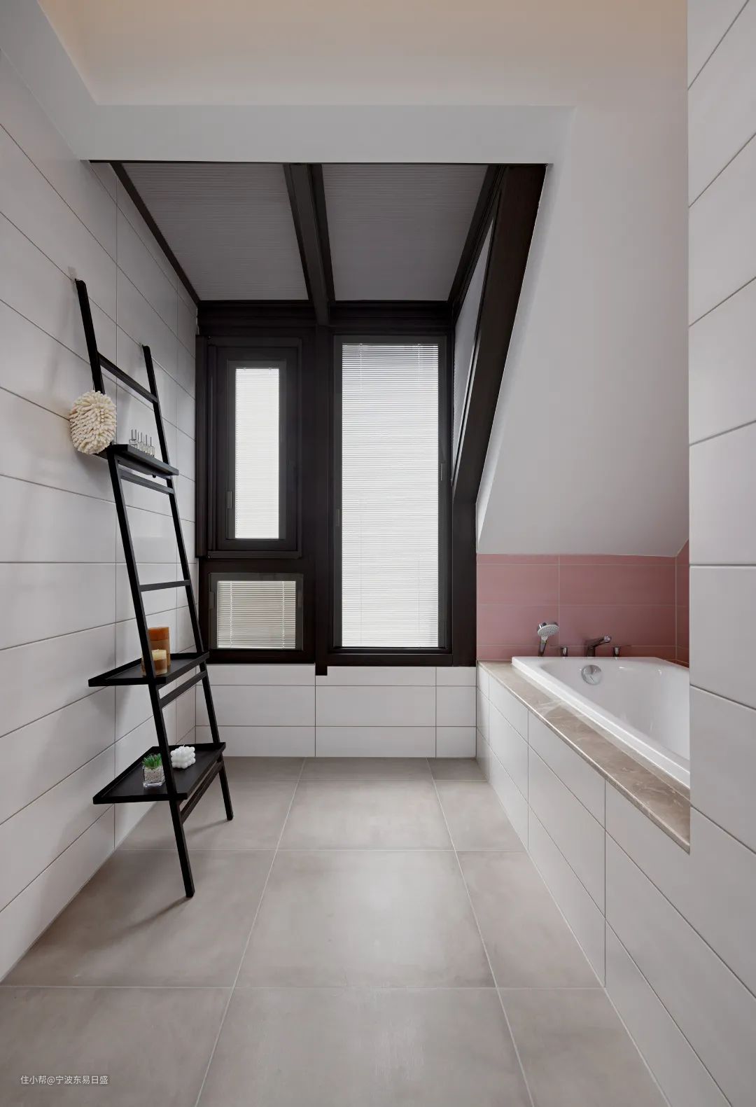 黑与白交织,轮廓分明的瓷砖线条,彰显复古美,设计师给爱泡澡的业主设计了大浴缸,非常舒适~