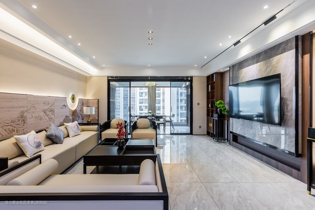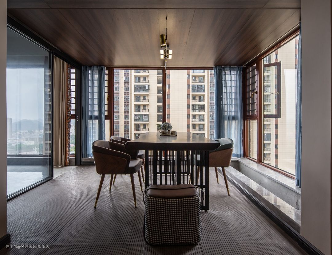这套实景案例的地区是位于浏阳地区,楼盘是碧桂园天荟,面积是非常的充足的,有260㎡是标准的大户型,屋主选择的是当下比较流行的新中式风格。因为这套案例的面积是非常的充足的,可以利用的空间也比较的多,当然设计师为了避免空间的浪费可以把每一处地方都精心的做了布局。全屋设计采用现代中式的装修样式,完美的将中式风格与现代家具融合在了一起,美观大气。男屋主会经常约三五个朋友到家里来喝茶,所以提了一个茶室的需求,而且采光要充足。屋主希望厨房能做开放式的,整体的空间会更加的宽敞,通透一些。