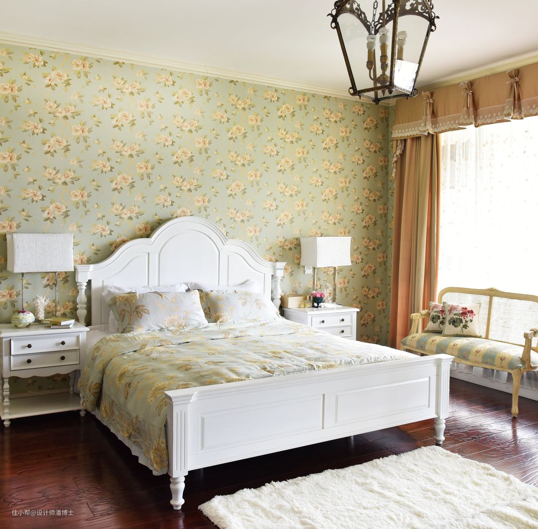 可以用唯美浪漫来形容的卧室,有着两扇大落地窗的卧室,抹茶绿的花朵墙纸搭配白色家具,带着小碎花的法式风格软包椅,卡其色的真丝窗帘,阳光撒进来那一刻,仿佛时光都被柔化了!
