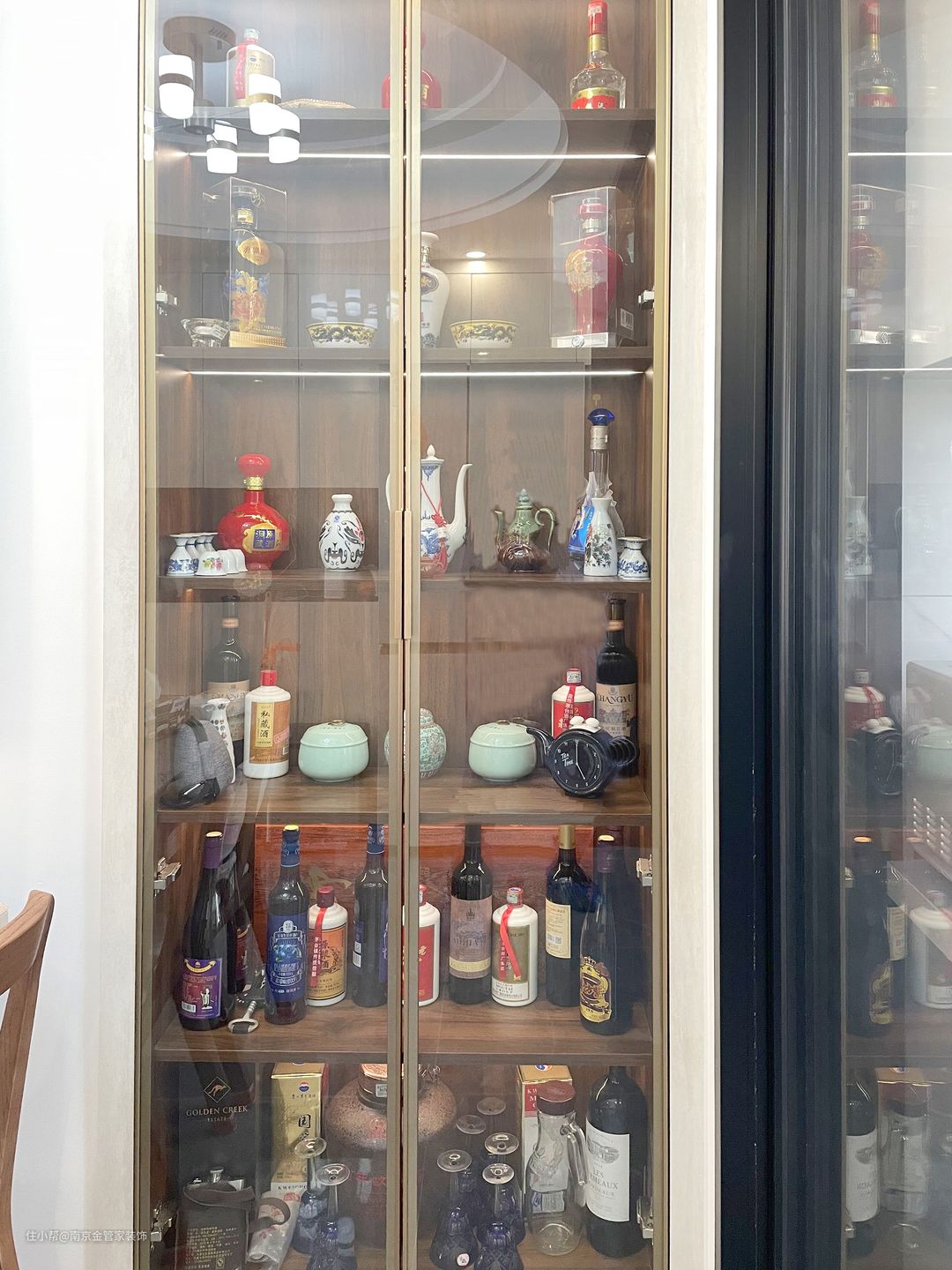 业主喜爱品酒、藏酒,透明酒柜兼装饰柜的设计深得他的喜爱。