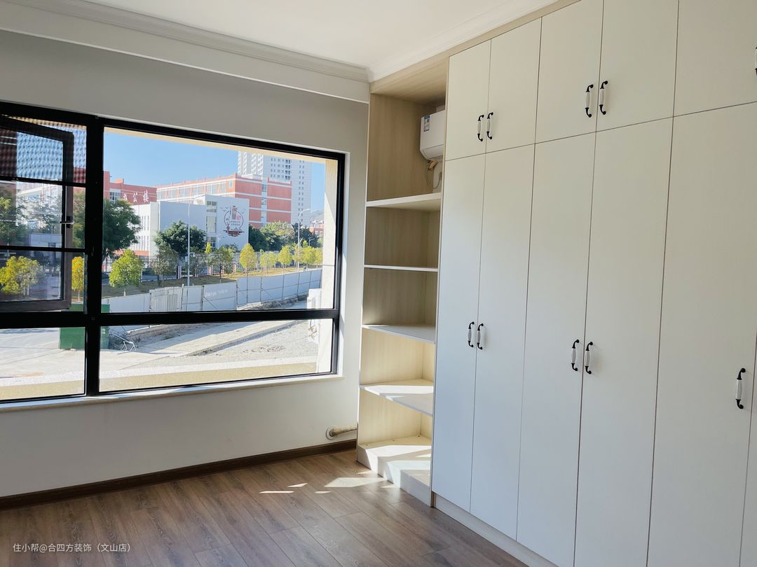 家里的小卧室因为面积的有限,打造成多功能设计可以是床也可以做储存空间,榻榻米床下面放被子,墙面的衣柜放衣服。