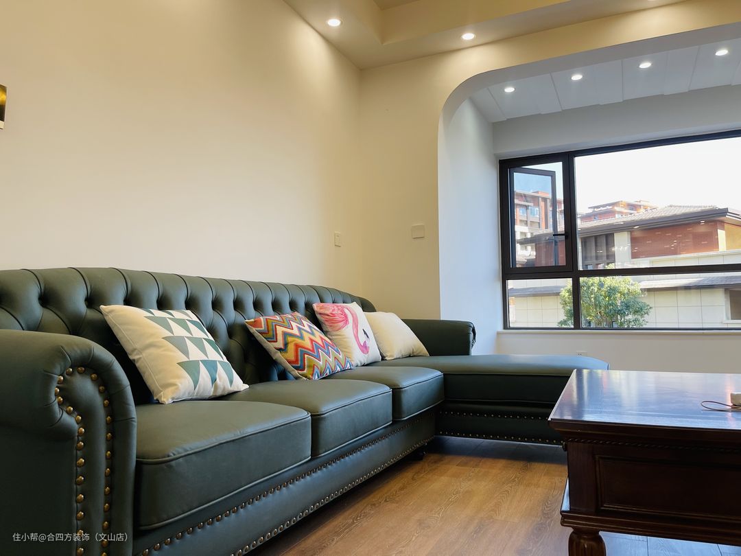 看得出来阳台设计上,也花了心思,拱形门连通客厅与阳台,显得大又实用,光线了也亮多,延伸空间感。