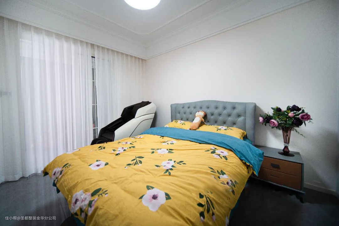 次卧的设计避开了繁琐的装饰,以舒适度和实用性为主。飘窗的视野完全打开,透光的窗纱能够带来良好的通透性。
