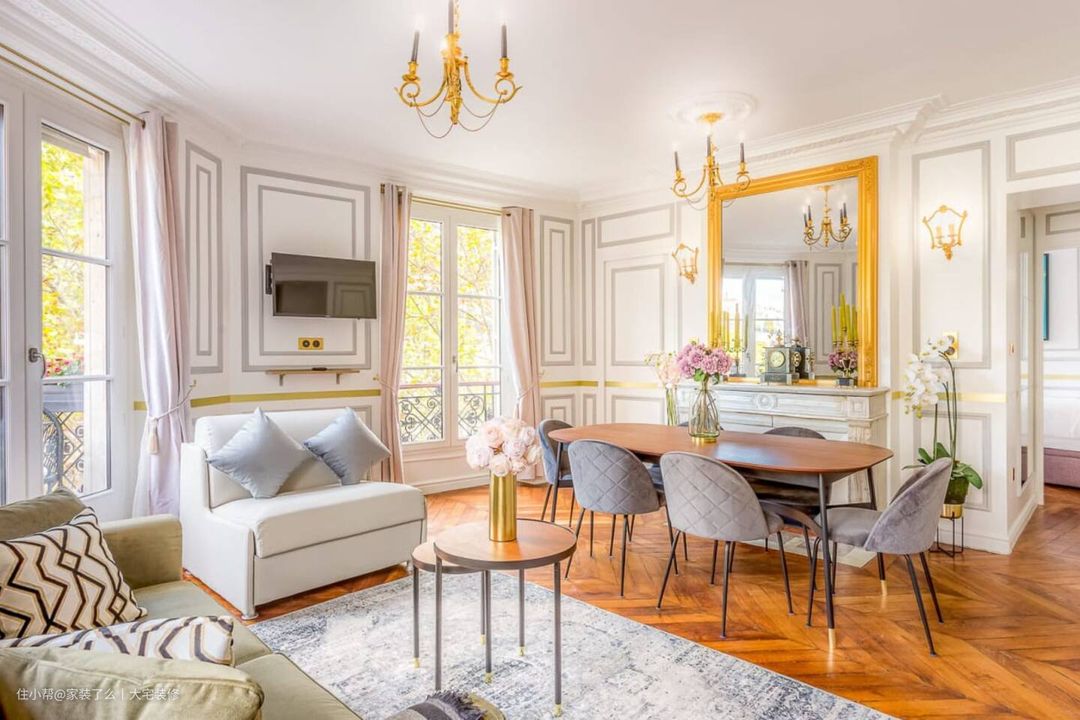 客厅看起来精致优雅,颇具宫廷般的华贵感。墙面选用了奶白色乳胶漆,结合空间层次感强的吊顶,搭配茶色原木鱼骨地板的铺排,打造了一个宽敞明亮舒适自然的家居空间。客厅墙壁上的回字形设计具有独特的装饰效果,金饰边框挂画营造出宫廷式的独特气息。造型优雅的金黄色水晶吊灯设计,将浪漫与华丽相融合,配上背景墙线条的镀金效果,让客厅充满了欧式风情。淡淡抹茶绿的沙发和藕粉色的窗帘相互映衬,平添了几分清新感。