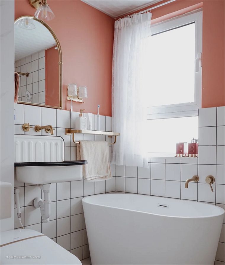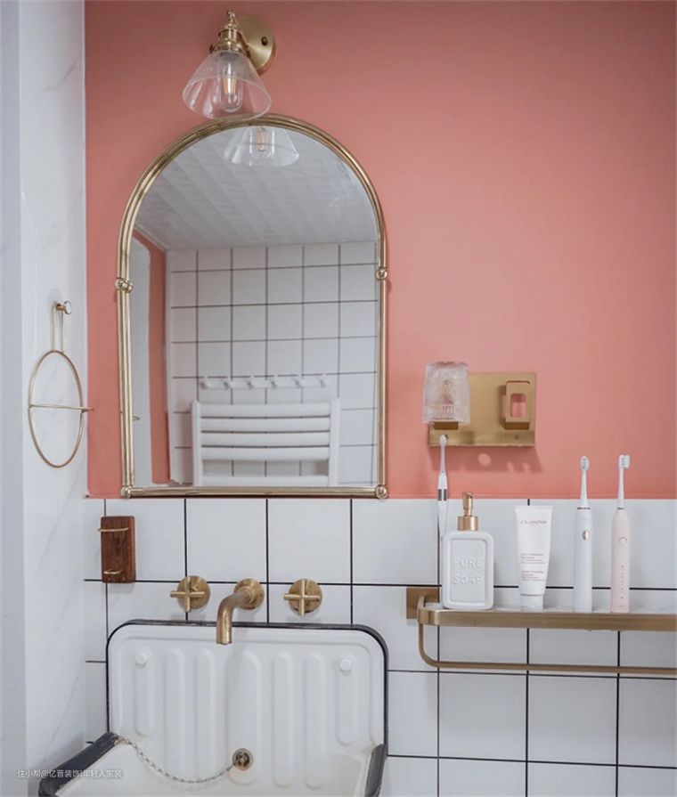 卫生间面积较小,整体以粉色为主,少女心满满~墙漆用的是防水漆,更加适用在卫生间区域。