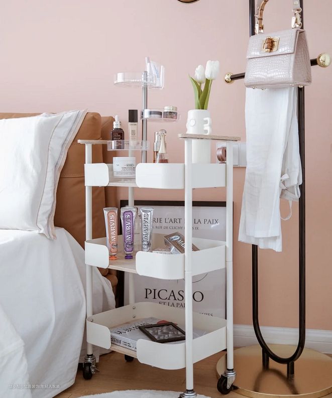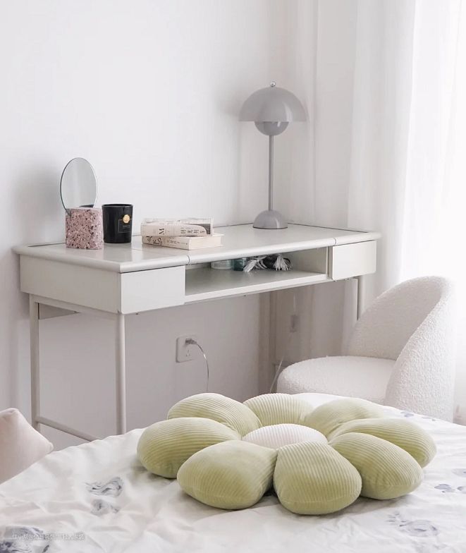 卧室面积不大,梳妆台放置床尾。巧妙利用空间布局设计,满足业主的日常生活所需,虽然小,但是也是满满幸福感。