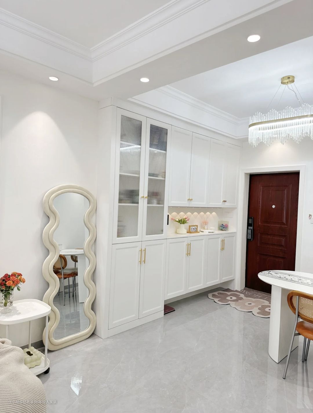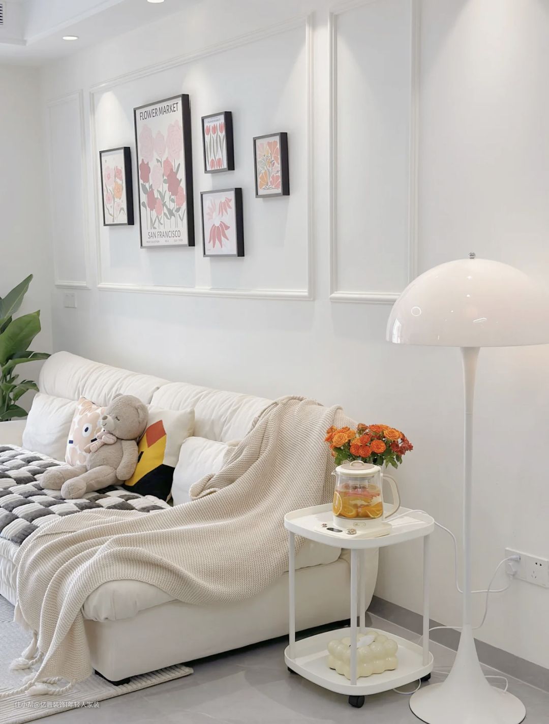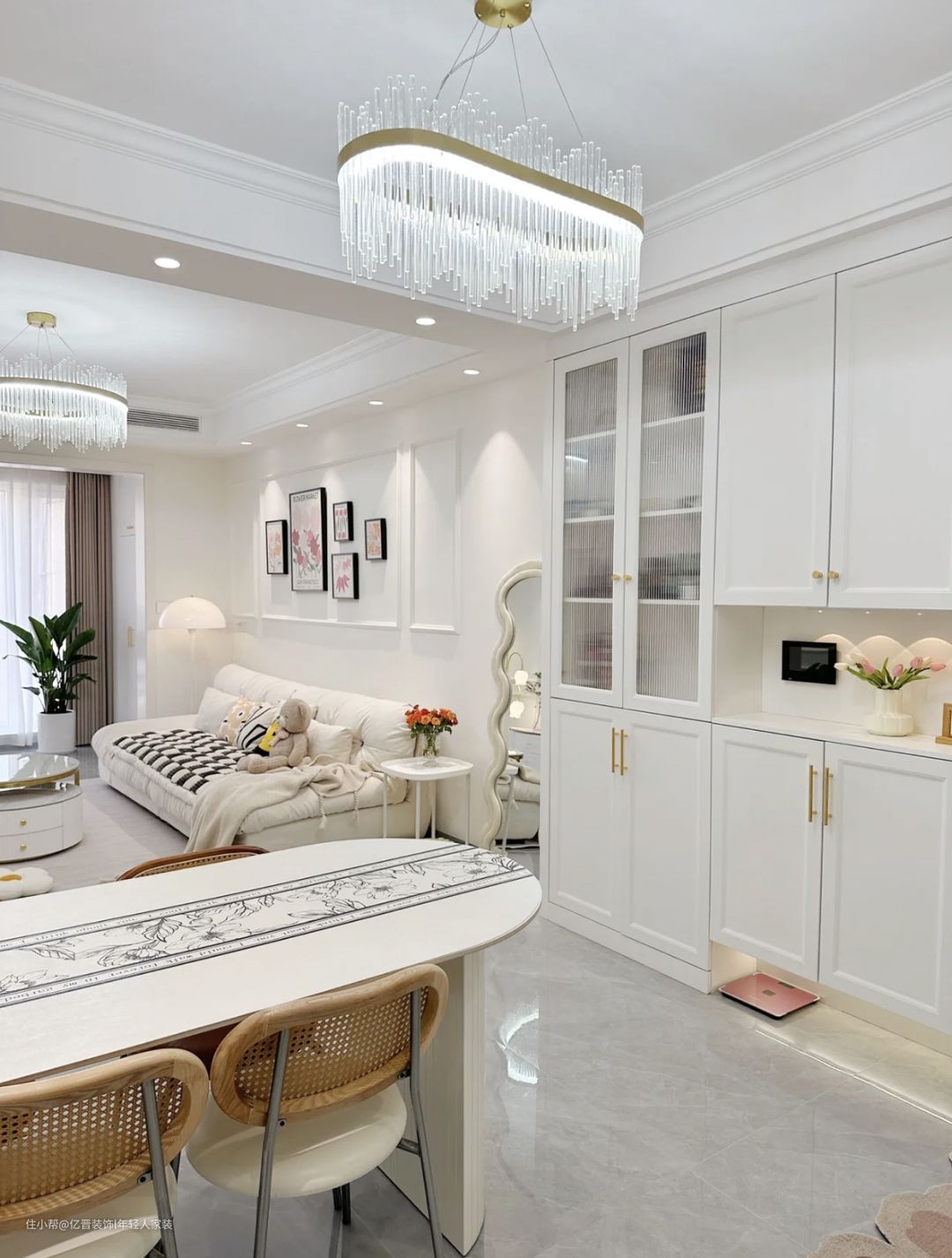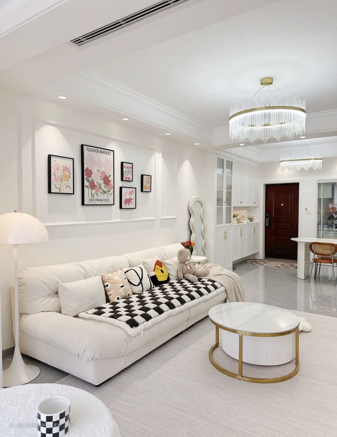 客厅打通阳台,地砖通铺,让客厅与阳台连接,整个通透感更显大又整洁。全屋白色系乳胶漆,不同光线呈现不同柔和的美。