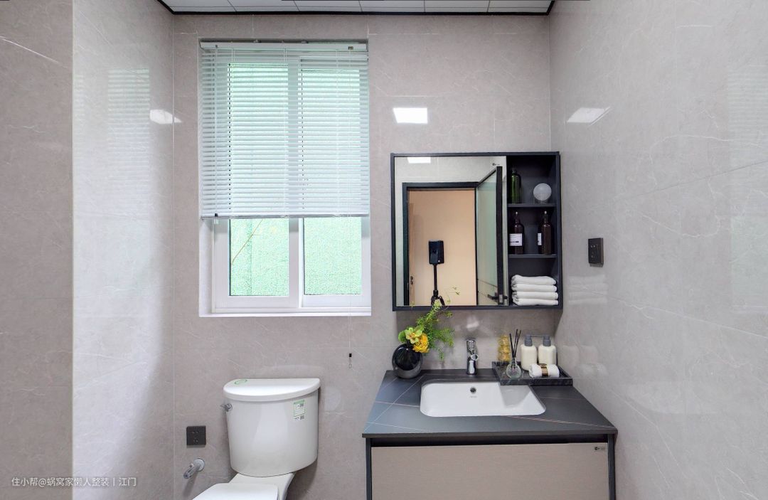 卫生间跟主卫风格高度相似,但却各有各的特点,卫生间半开放式半封闭式的收纳镜柜,更方便业主的收纳需求。