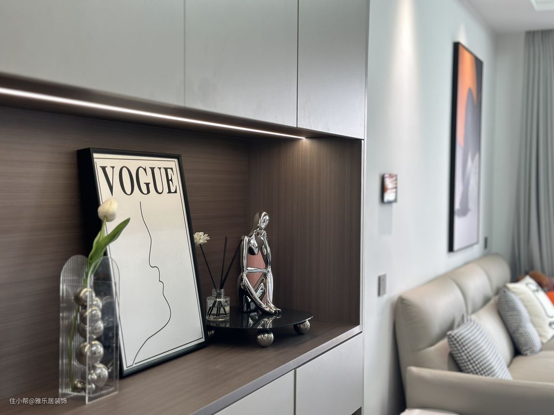浅色系的家具在视觉上让空间更显大同时也更加透亮,挂画和精致的小摆件是增添空间氛围感的神器哦~