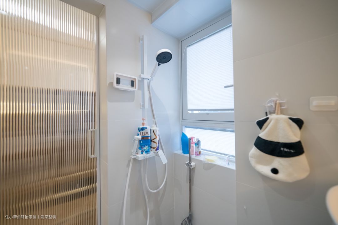 公卫做干湿分离,洗漱台的正上方。“遮挡的艺术”吸人眼球,它的解释很有意思: “只要是没看见,就是干净的整洁的”,业主的居家理念,有点独特哦!
