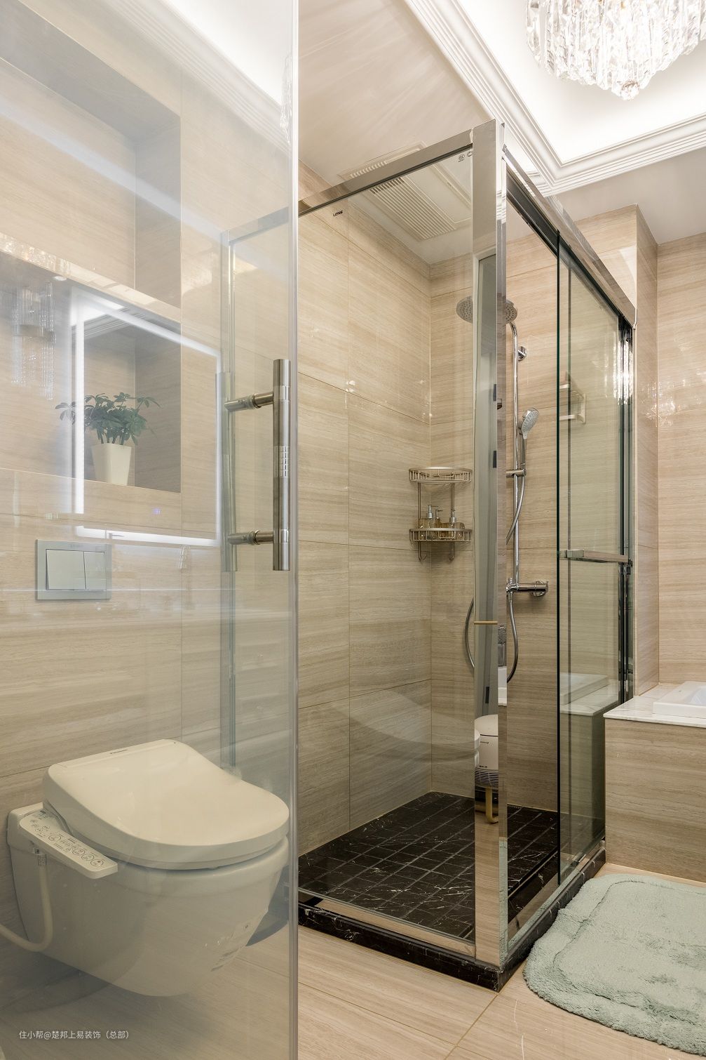 卫生间黄白纹理瓷砖通铺,干湿分离的设计非常的实用,黄白色的纹理给人一种干净,明亮的感受,同时也很容易搭配其它颜色的卫浴设备,通铺也让整体空间看起来更加整洁、同时增加了空间纵深感。 干湿分离的设计也能提高卫生间的使用效率,让使用者更加方便舒适,因此干湿分离的设计非常实用、美观。