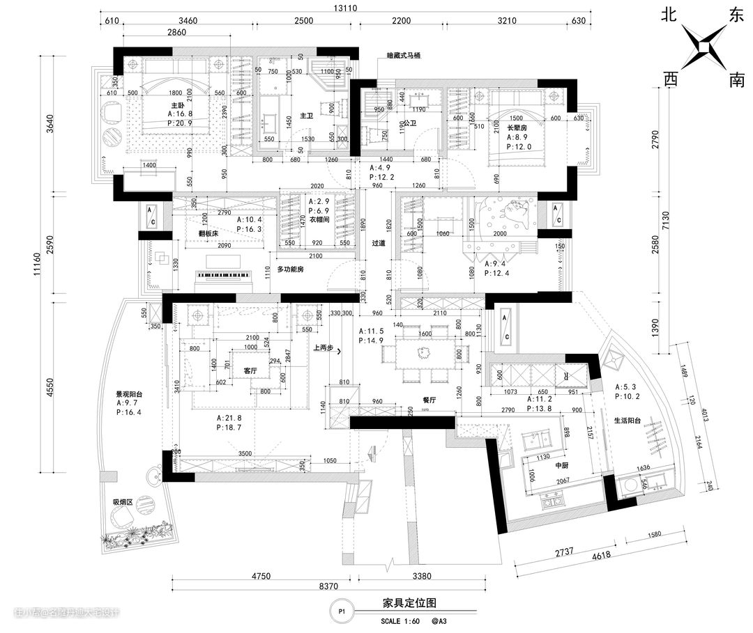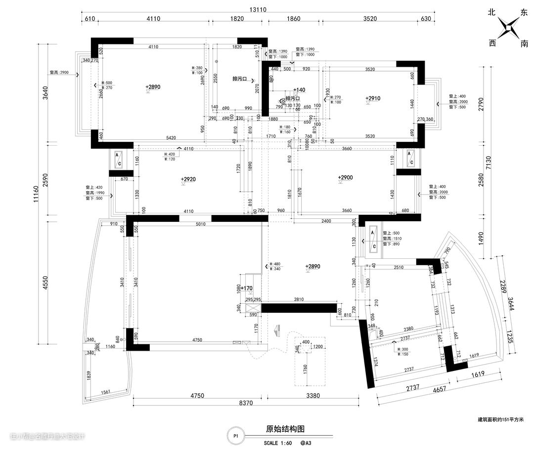 “效果的一步步还原,没有100%也有98%了,我的想法落地了,符合度还是很高的。”业主给出如此高的评价,离不开前期全方位的设计考察与沟通。空间构造与装饰也同样需要“因地制宜”,本案中设计师合理考量居住者的生活习惯与要求,以此为肌理构建空间的神与形。 本案原始结构图与最终家居定位图结构相差不大,仅有的两处改动在于:将主卧宽度适当缩小,并入排污区后建成主卧卫生间;长辈房同理,墙体移动后多出的面积规划进公共卫生间。因此在保障合适的卧室面积基础上,避免了狭窄空间带来较差的盥洗体验。