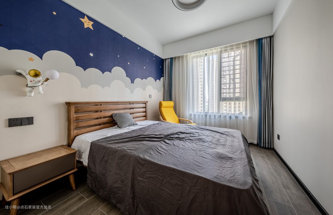 卧室,以舒适简约为主,所以装饰都是简约,简单。色系更加柔和,来塑造一个睡眠环境。