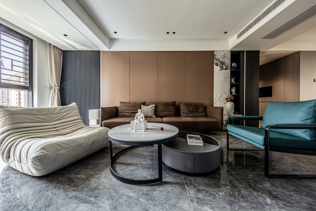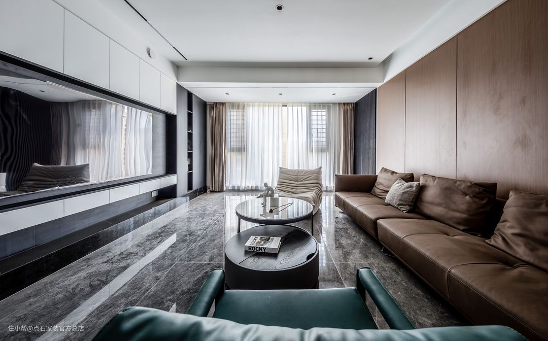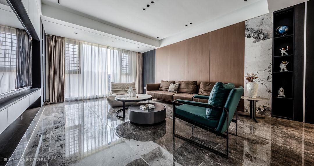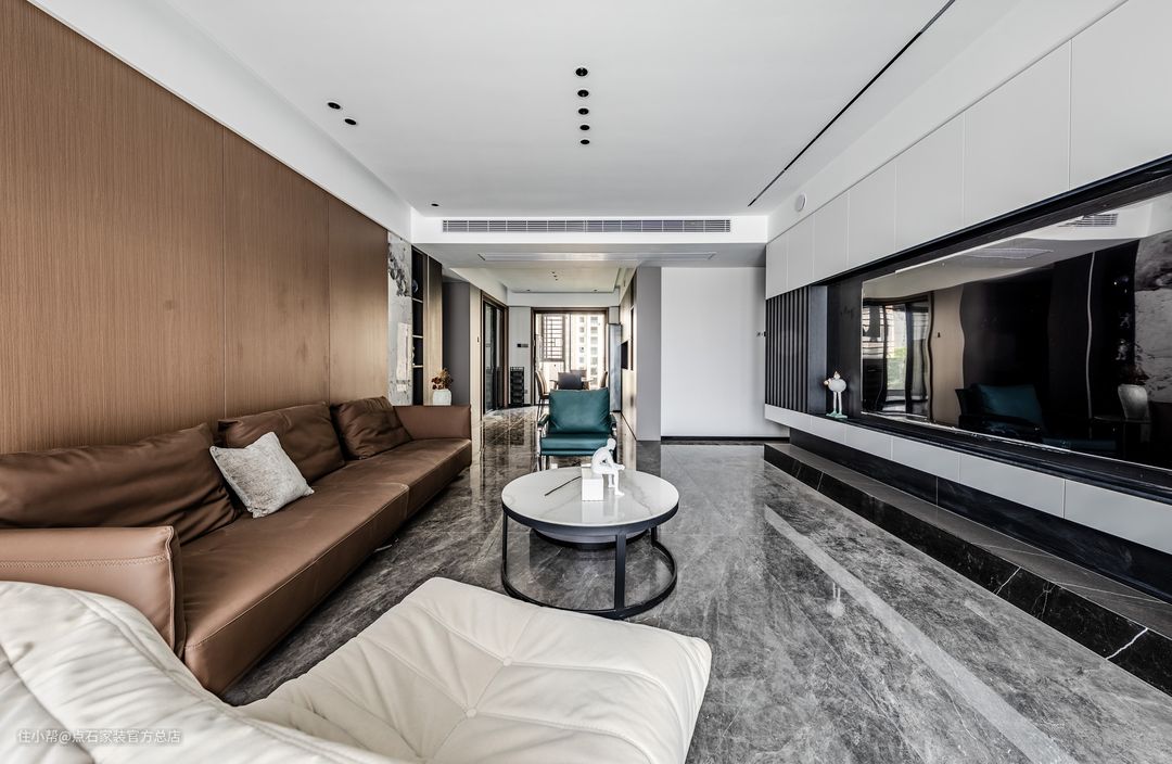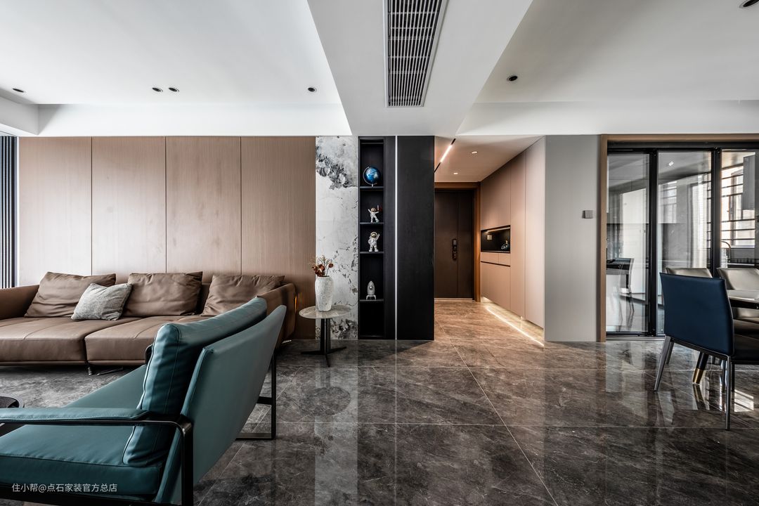 今天给大家分享的是,一套现代轻奢风格的案例,整体利用了非常多的空间来做柜子,在墙面的装饰上,用了原木元素和岩板元素,多种材质的结合。