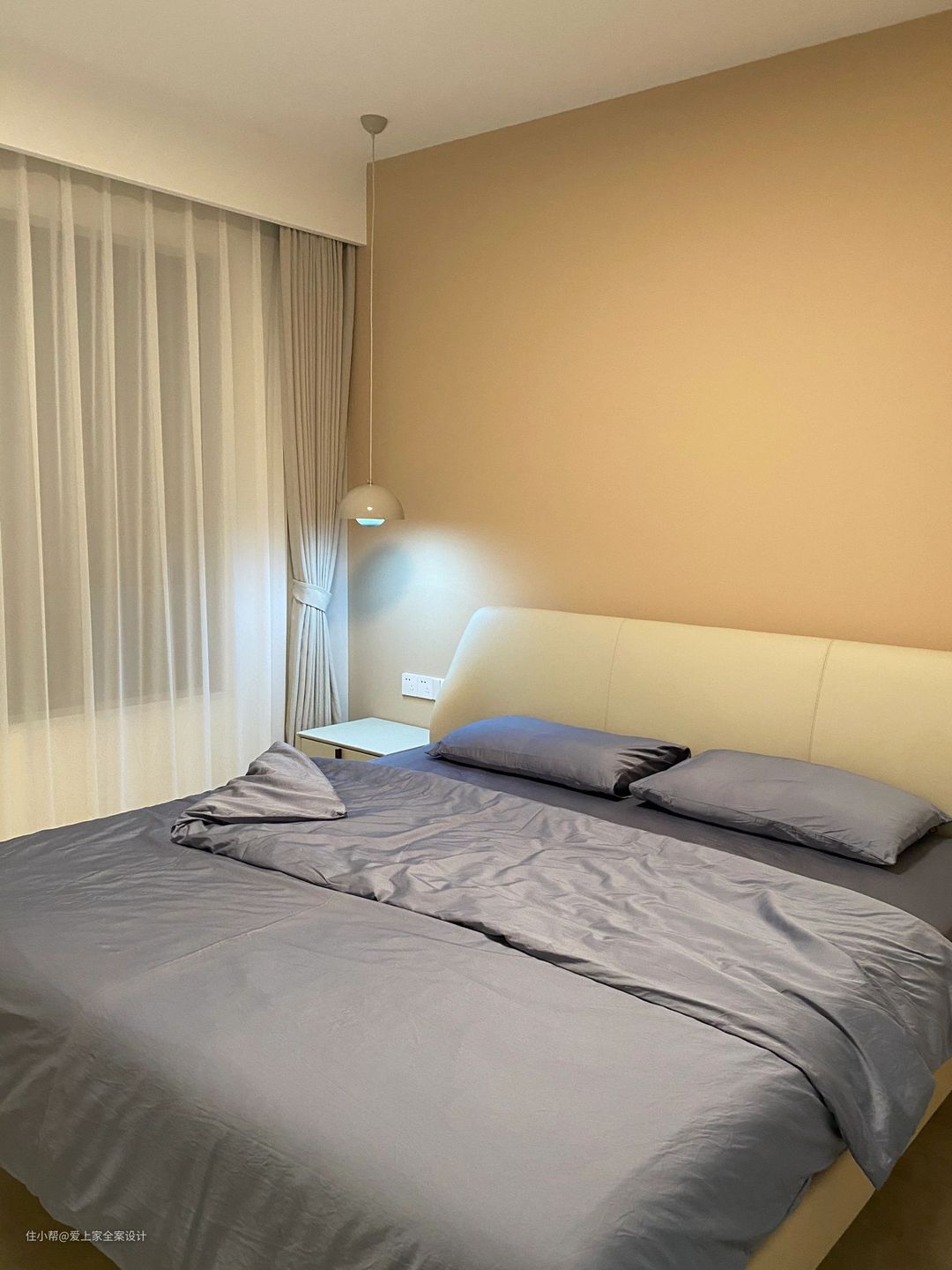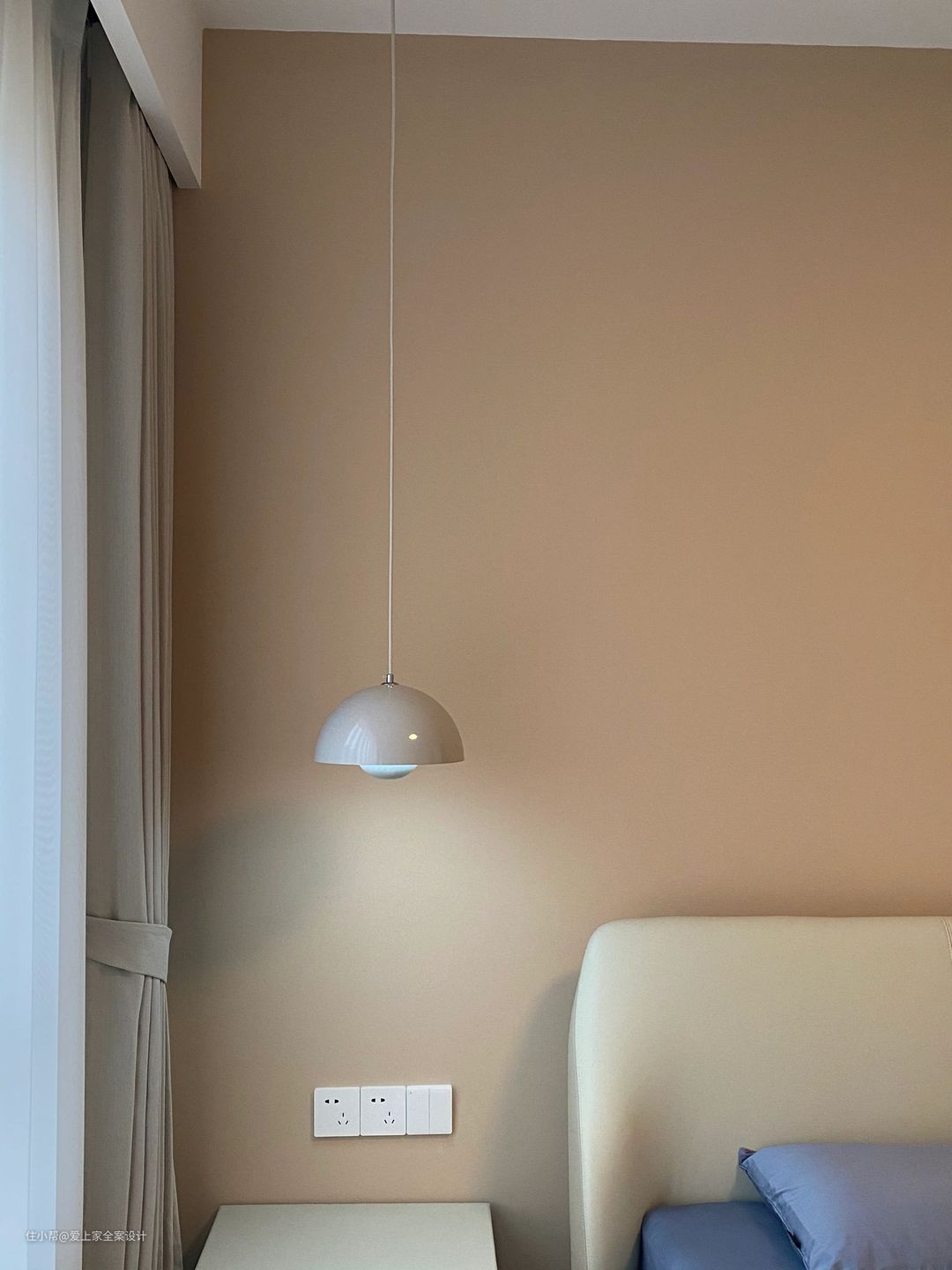 主卧是休息和放松的地方,它需要温馨和舒适的氛围。这款主卧采用暖色调为主,墙面装饰简约却不失温馨,采用深色床品和柔光吊灯,突显出整个空间的高贵品质感。