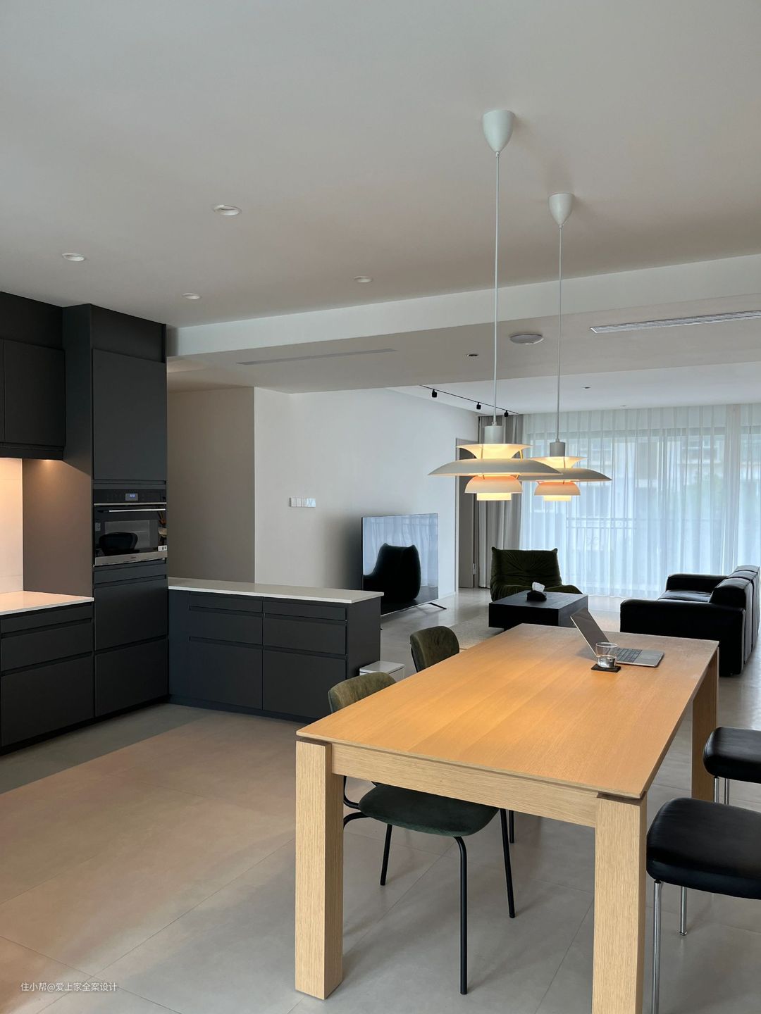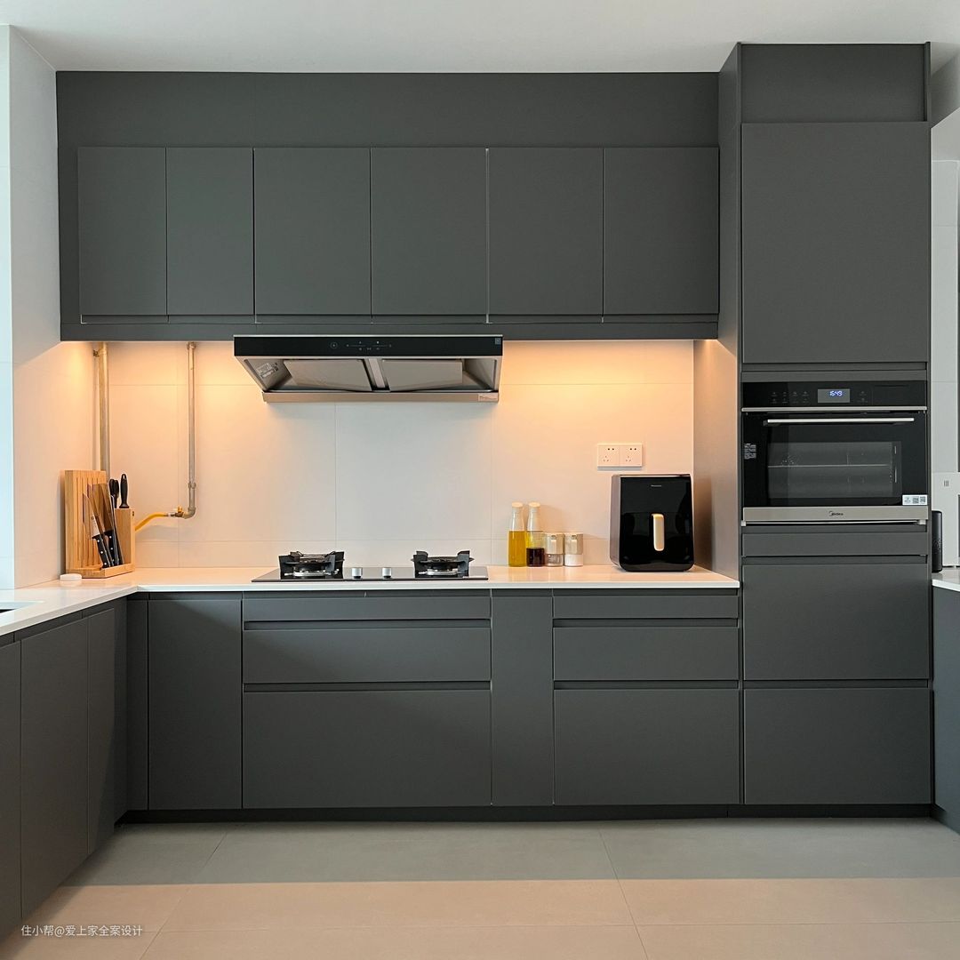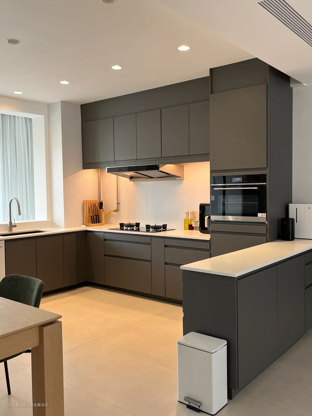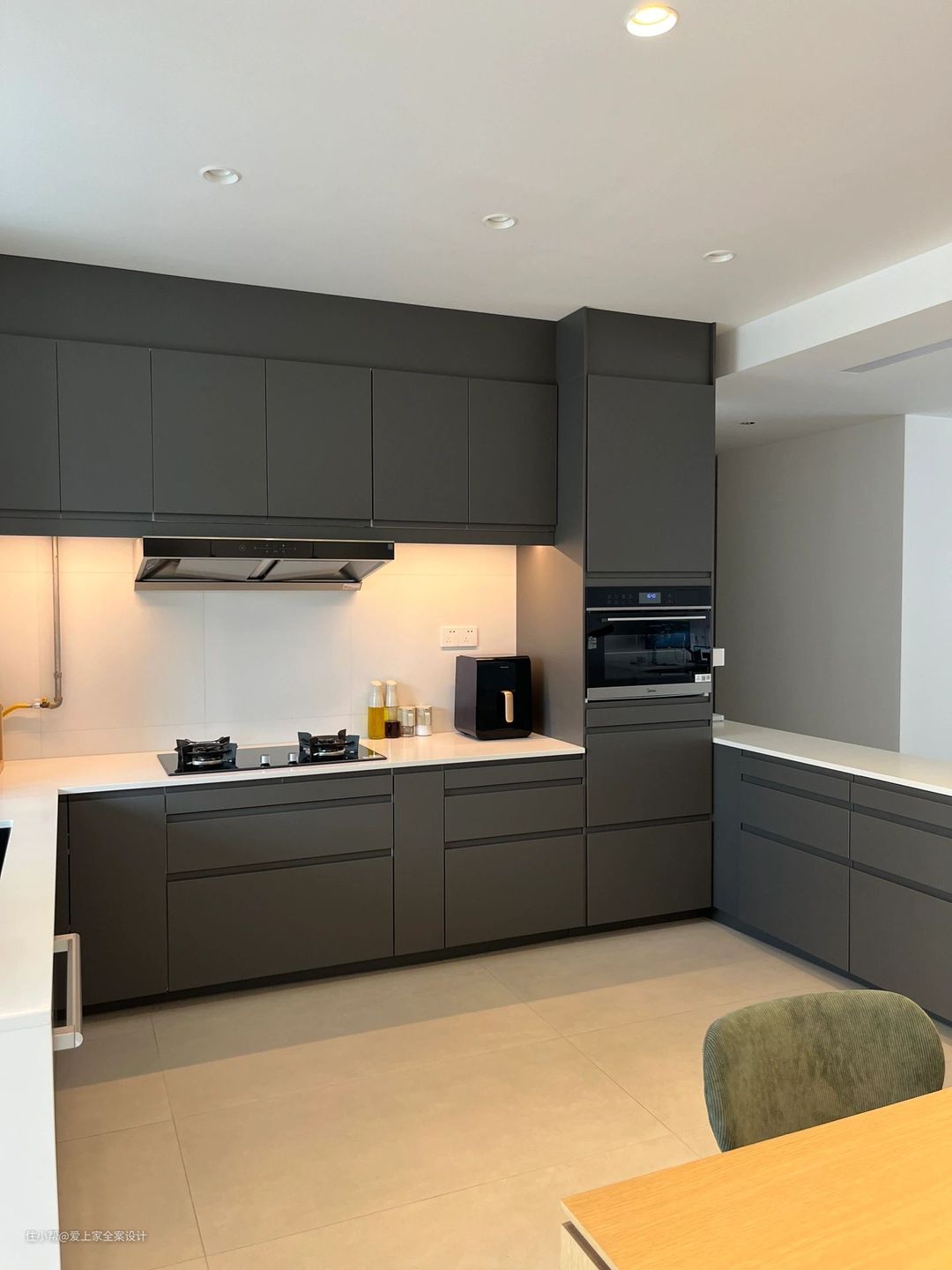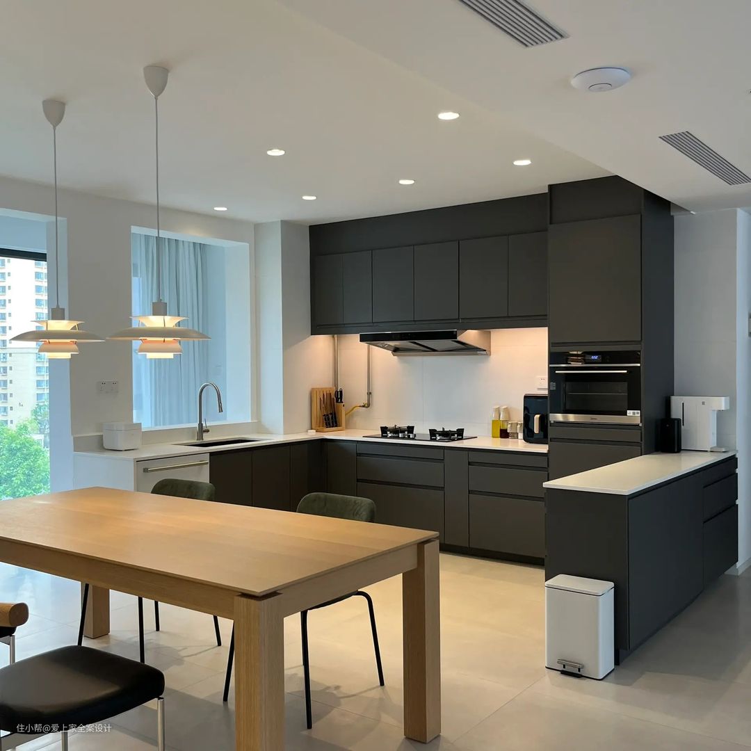 厨房是家中生产和体现美食的场所。选择纯黑色的哑光橱柜,高级感满满。