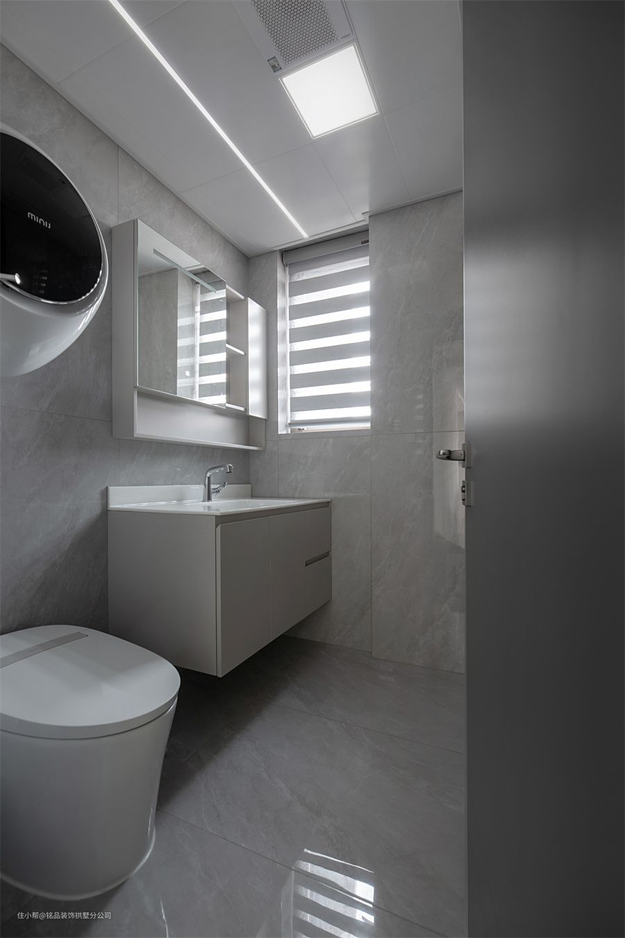 卫生间以白色为主色调,悬空洗漱柜能有效避免受到水渍的侵蚀,也不会有卫生死角,打扫也方便些