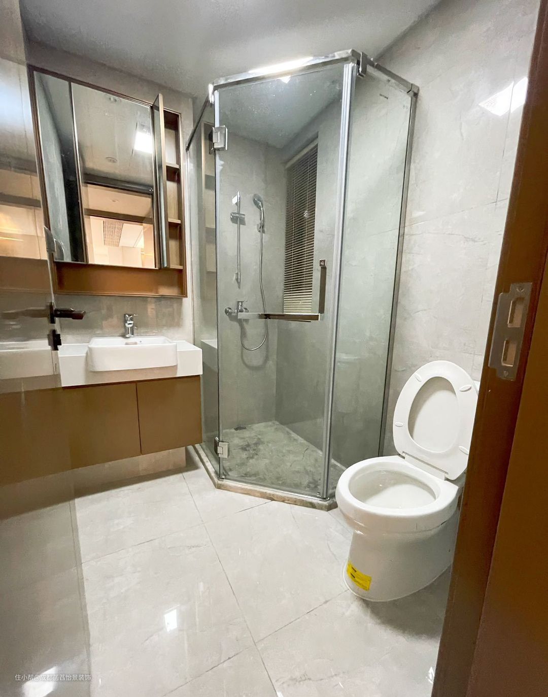 卫生间做的钻石型设计,悬空浴室柜减少卫生死角。