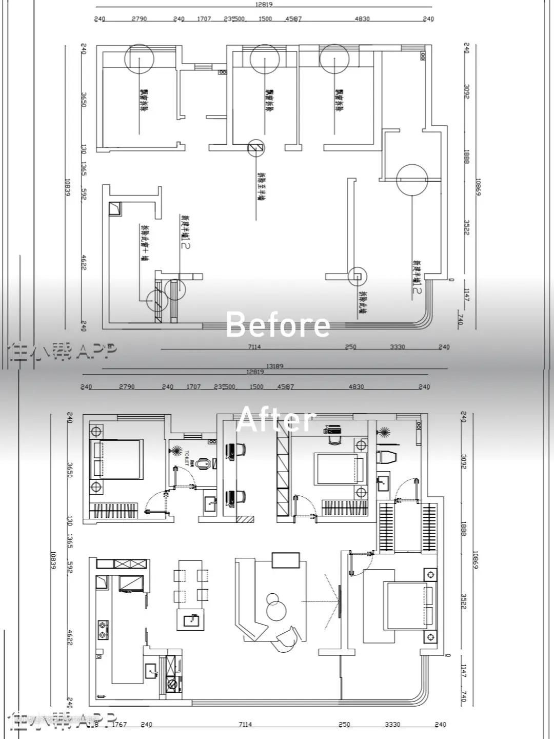 户型改造: 1、书房拆除板墙,扩大空间,保证书房整体性让出宠物居住的区域 2、厨房拆除原窗和墙,以 u 型设计为主,布局合理让动线更便捷 达到改善功能空间利用率、美观度、舒适度...... 刚组建的小家庭,对两人都追求高品质的生活,所以家的风格设计简单又不失高级。功能上满足多元应用的公共空间,满足休息、跟家人互动的需求。