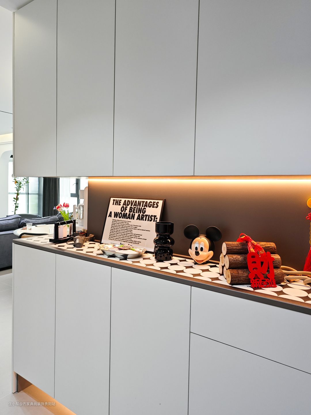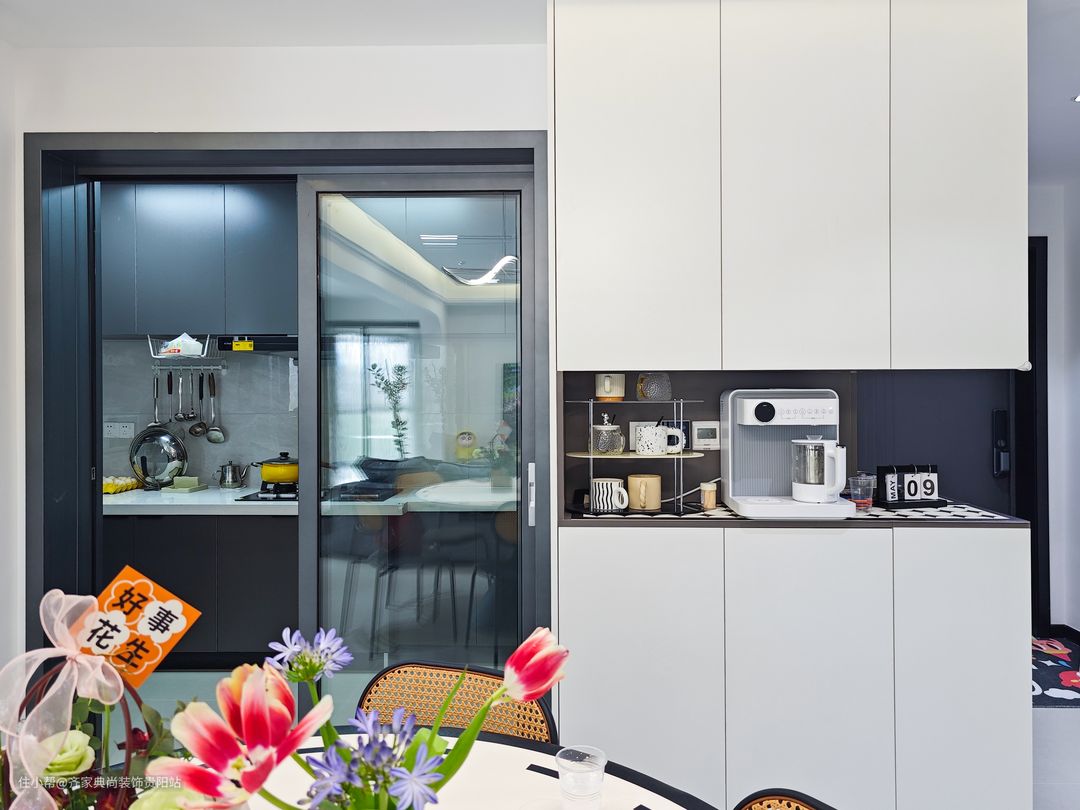 集成壁柜设计:能够将厨房空间的储物功能发挥到极致,同时能够更好地整合家具,美观好看又方便实用。