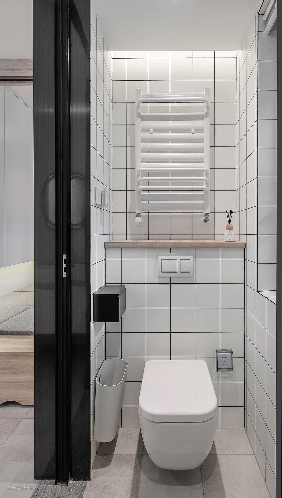 卫生间区域是改造相对较大的地方,主要思路是把两个没法做干湿分离的卫生间改造成一个三分离卫生间和一个主卧衣帽间。虽然看似把两个卫生间改成了一个卫生间,但实际使用上,一个三分离卫生间的使用便捷性反而更高,因为每个功能区都是独立空间,可以在同一时间使用而互不干扰。同时利用多出来的空间给主卧打造出单独的衣帽间,及增加了主卧的收纳性,也让主卧空间不会显得太紧凑。