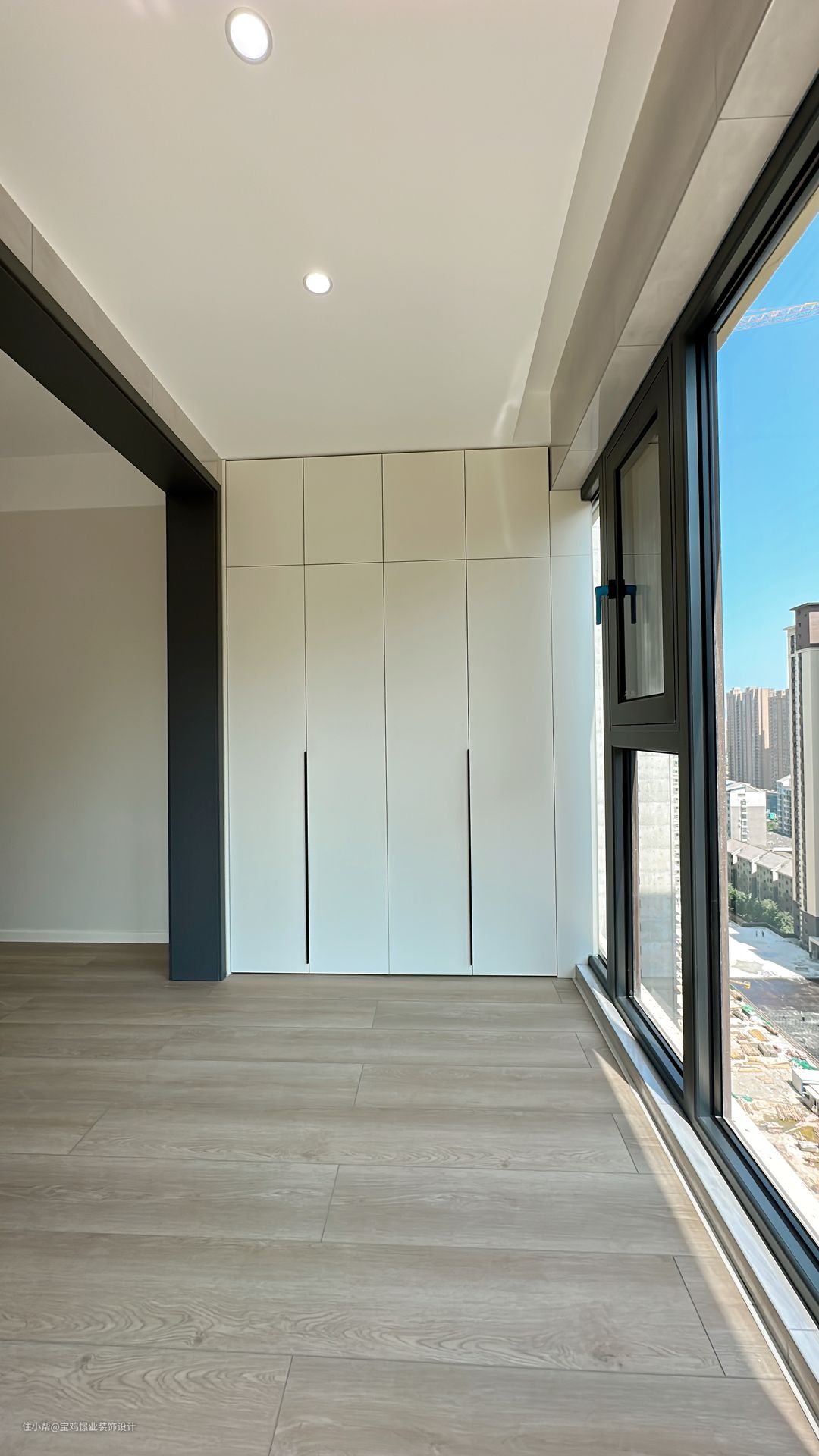 阳台在主卧里,主卧的衣柜则内嵌在阳台的另一边,使主卧的空间更大,实用性也更强。阳台做的是落地窗,采光更好。