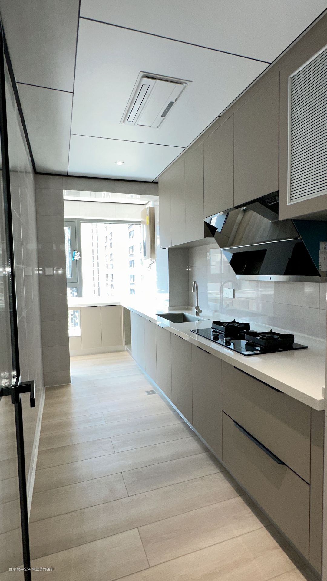 这个厨房虽然空间不大,同色系橱柜整个空间首先是非常大气且实用。厨房常规的橱柜布置但更节省空间。木地板与墙面的瓷砖搭配,橱柜的门板在色系上保持统一,让整个空间的氛围感保持统一、协调。厨房更加通透明亮,更加宽敞。