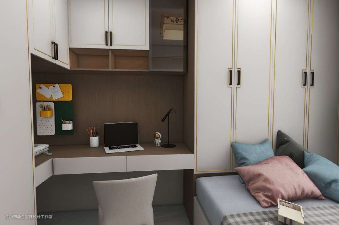 ⭐:打造成颇具中式意蕴的新中式榻榻米书房。 满足亲友留宿及平日阅读功能; 极大收纳组合结构,衣柜书桌书柜; 办公桌一体化连接设计,高效利用转角空间;舒适高度和桌面宽度设计,让办公更加得心应手。木色系质朴自然,沉静舒适之感油然而生;