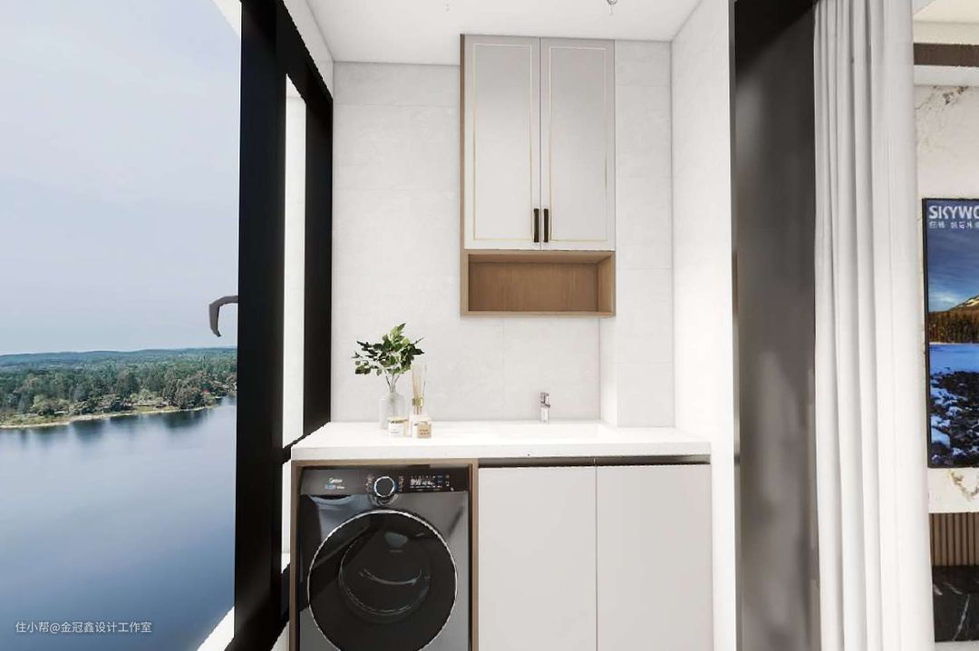 ⭐:阳台台下盆洗衣机柜,美观而且还好打理,对面做一个大储物柜满足日常小物件和清洁物品的收纳