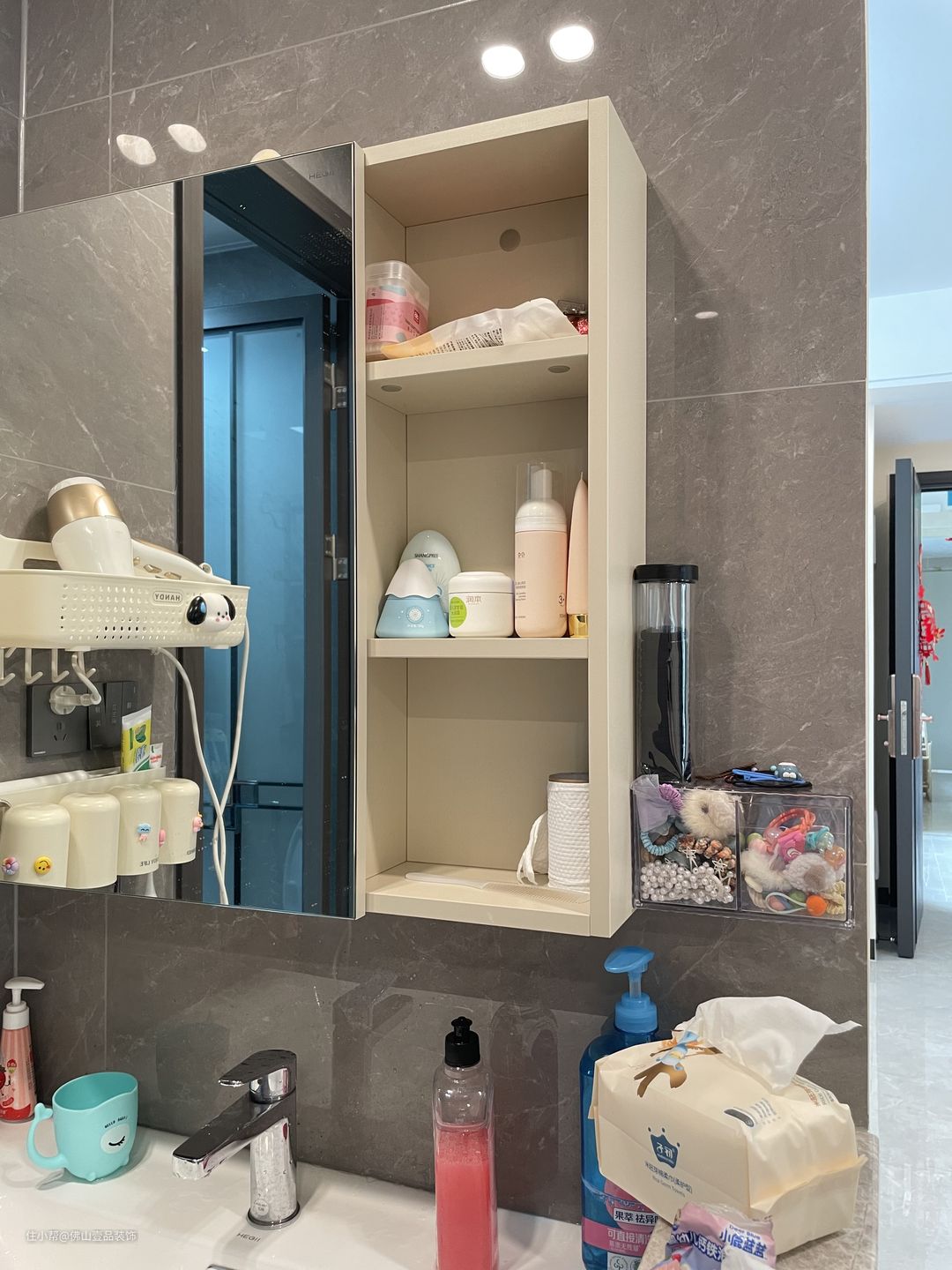 主灯:在洗漱台的位置嵌入了一个筒灯,提升空间的采光。