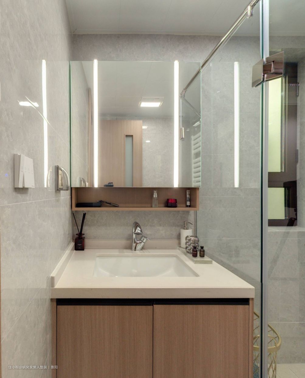 简约的台下盆卫浴柜便于打理,智能感应的浴室柜灯光更丰富了空间层次。卫生间做了干湿分离的设计,不会把水渍弄的到处都是,预留插座是非常明智的,智能马桶可以提升幸福感。
