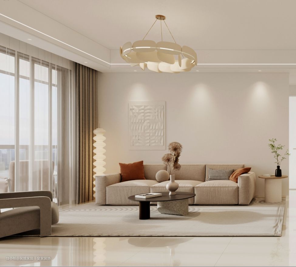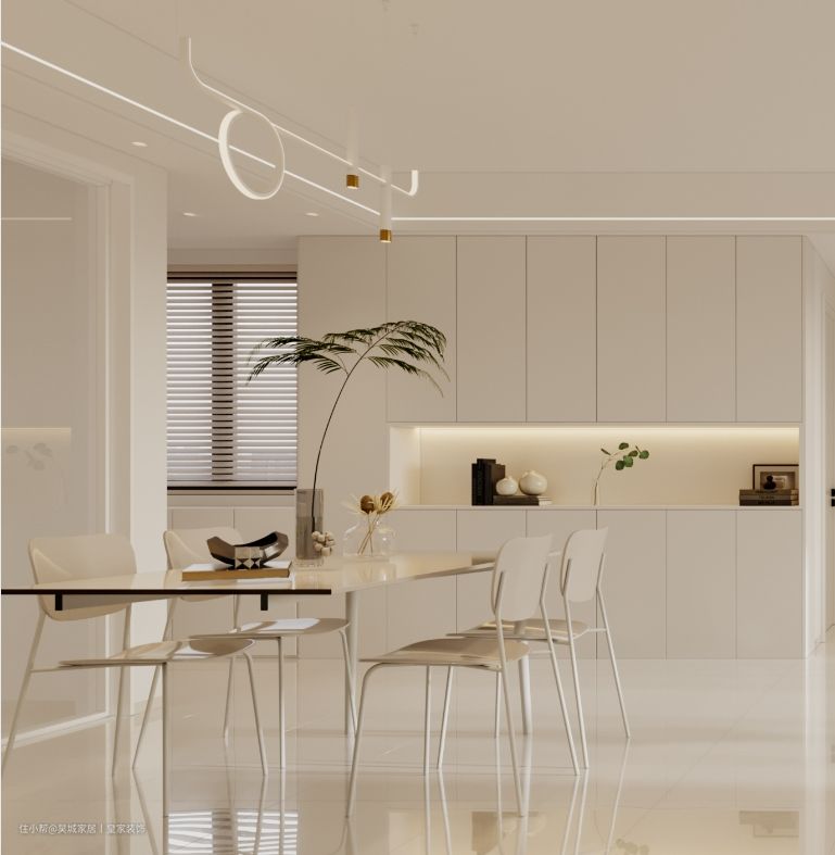搭配无主灯加主灯设计,视觉上有层次感,整体空间通透又明亮,超有氛围。