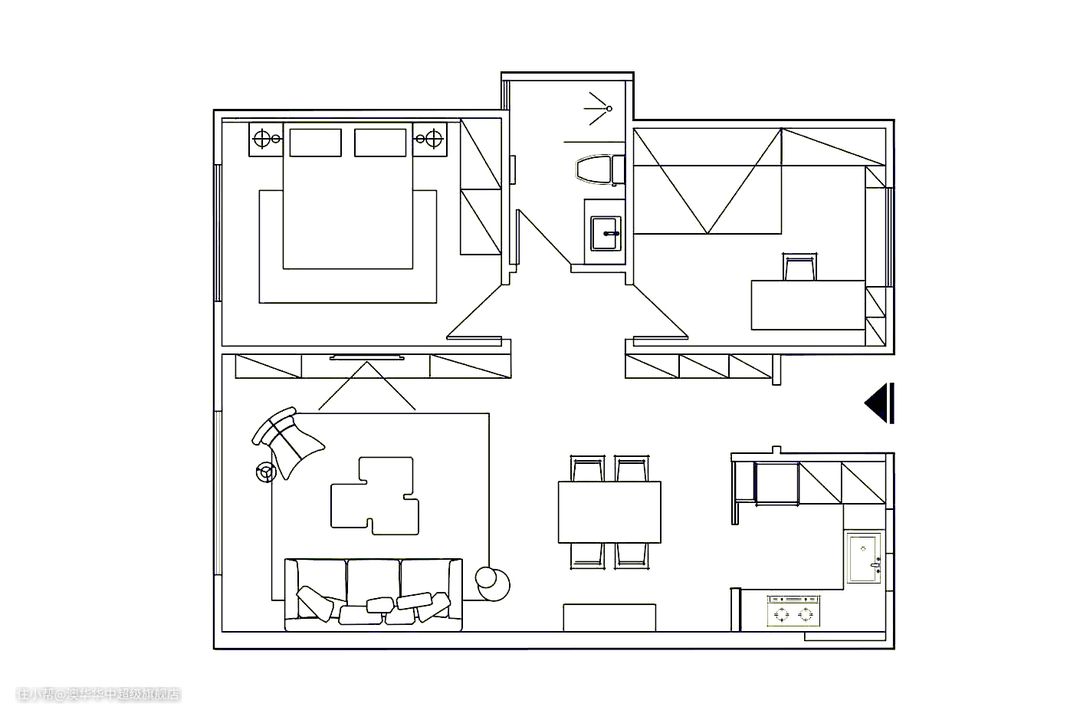 两居室的房子,适合常住人口不多的家庭。本案户型方正,空间布局合理,仅需根据空间结构做好功能规划即可。 ① 入户定制通顶玄关柜,增加入户收纳 ② 厨房U型布局,安装玻璃移门,隔绝油烟 ③ 次卧改作多功能房,解锁多种生活方式