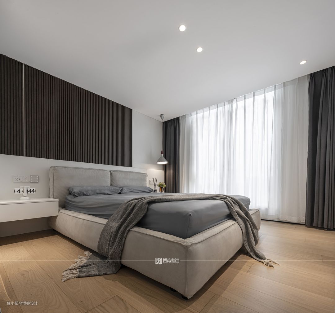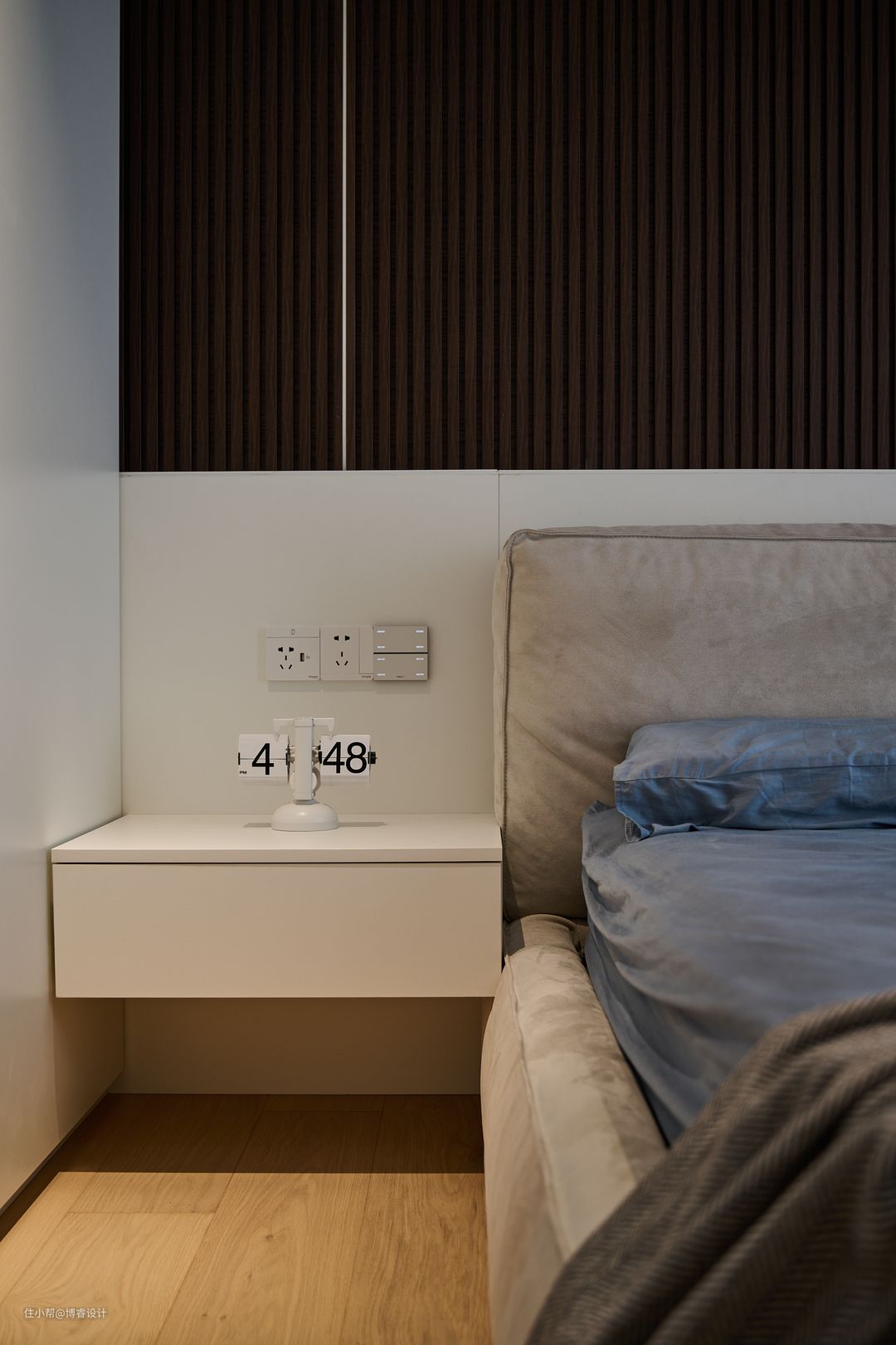 卧室整体传递内敛温和的气息,从设计到道具,匠心独运。素雅的空间布置以简单的线条,为空间增添细腻的灵动感,没有多余繁杂的装饰,却交融出优雅且富有生命的力量。
